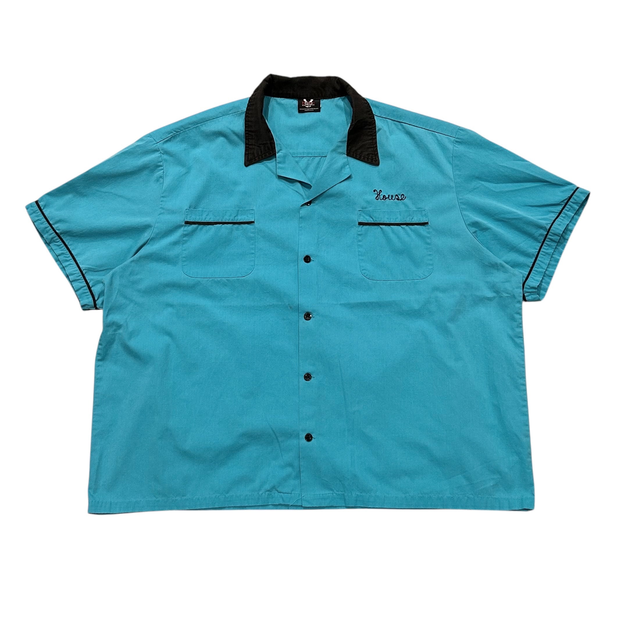 00's Hilton Bowling Shirt ビッグサイズ / ヒルトン ボウリングシャツ ブルー ブラック 黒 半袖 ビンテージ 古着