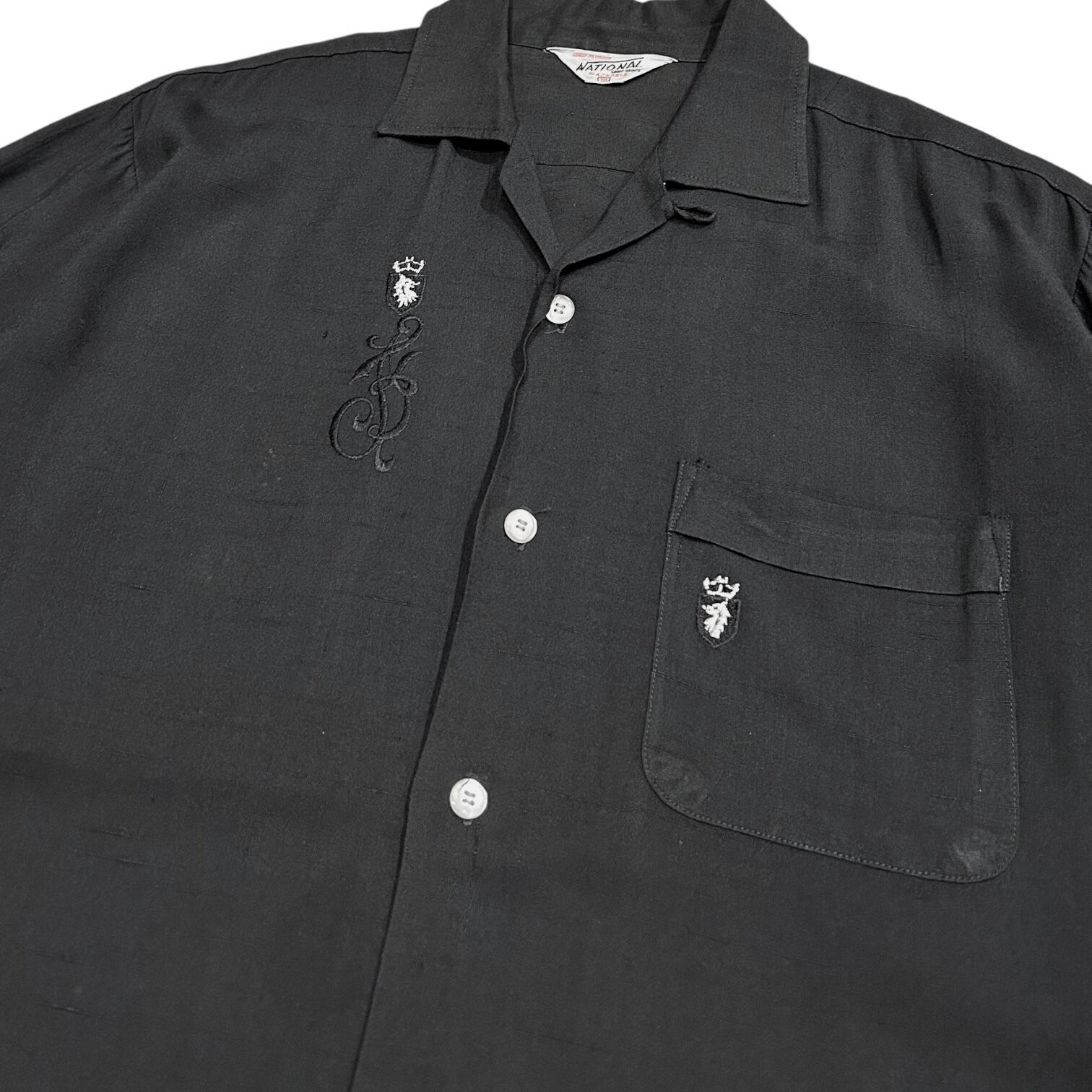 60's National Open Collar Shirt "Black Rayon" M / ナショナル オープンカラーシャツ ブラック レーヨン 開襟 古着 ヴィンテージ