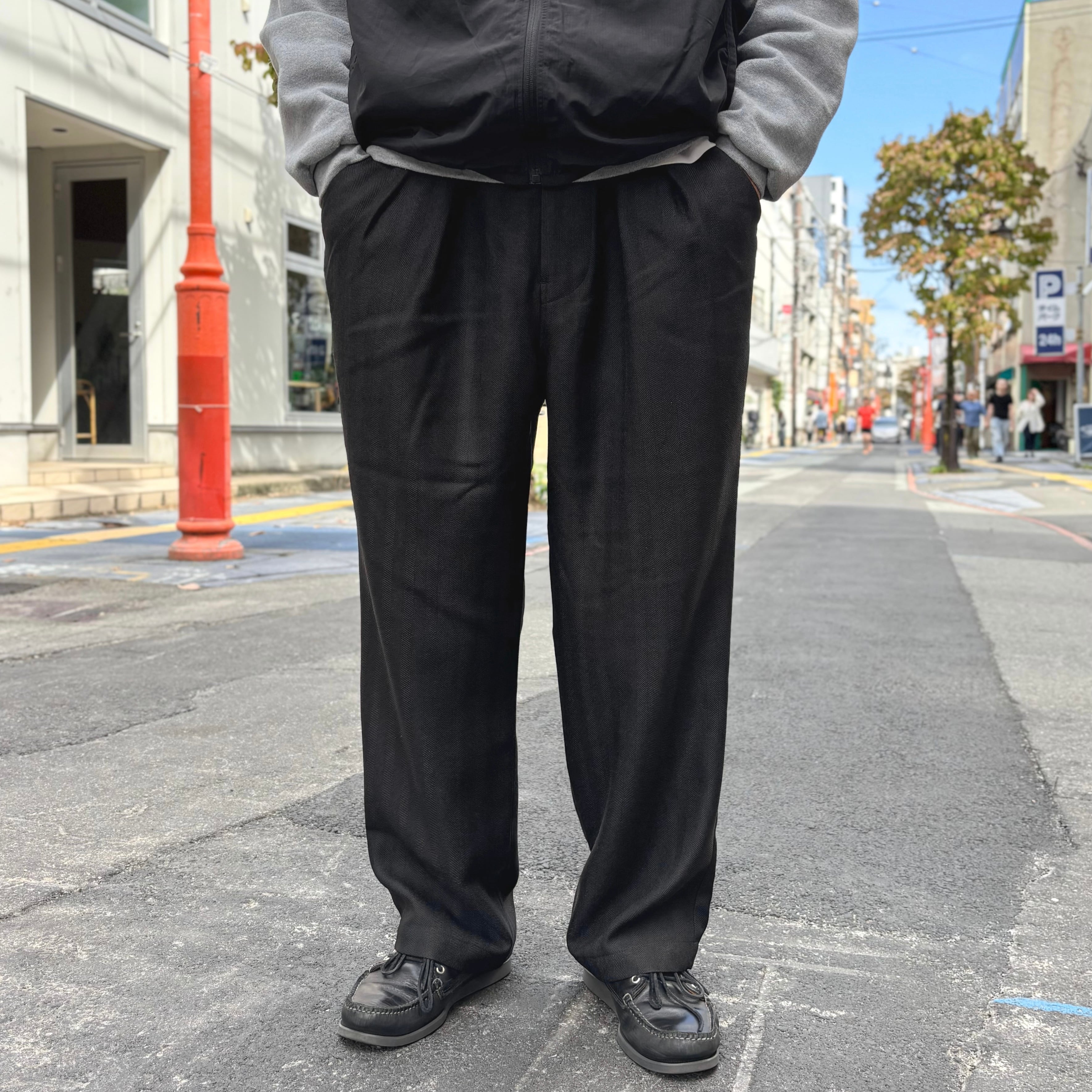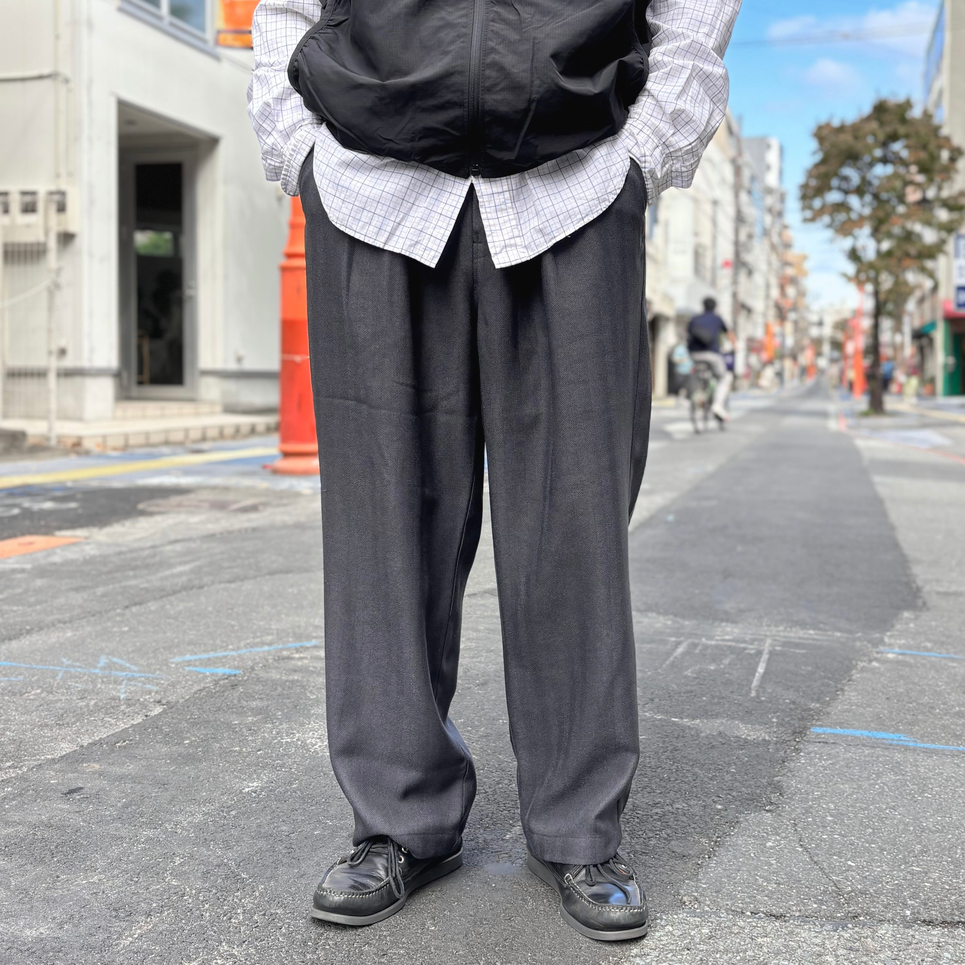 AUDIENCE LANATEC® Herringbone Tweed 2Tuck Wide Easy Pants - Made in Japan / オーディエンス ヘリンボーン ツイード 2タック ワイド イージーパンツ