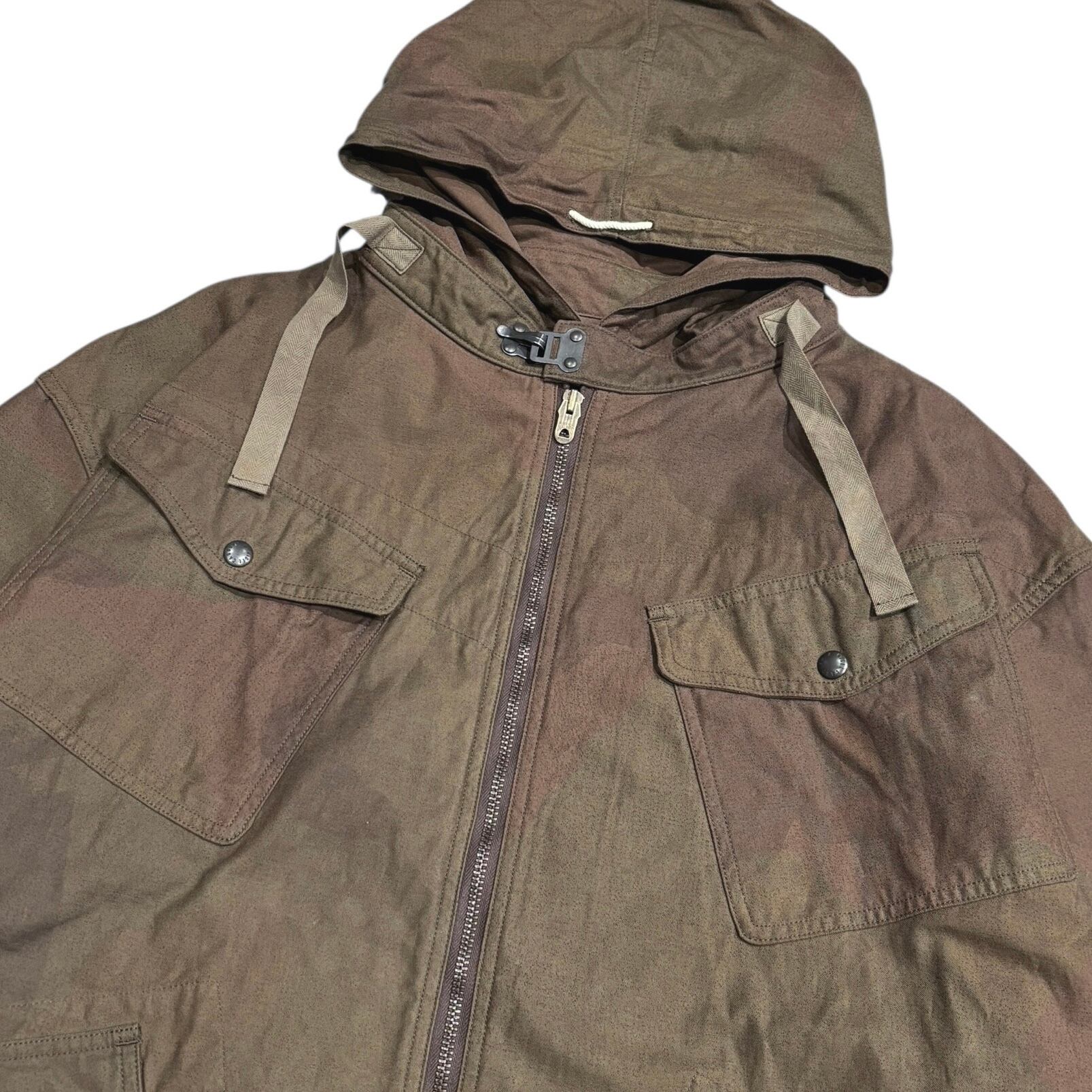 フロントの大ぶりなフラップポケットや各部のドローストリングなども、ミリタリーらしい機能美の詰まったディテールです。
