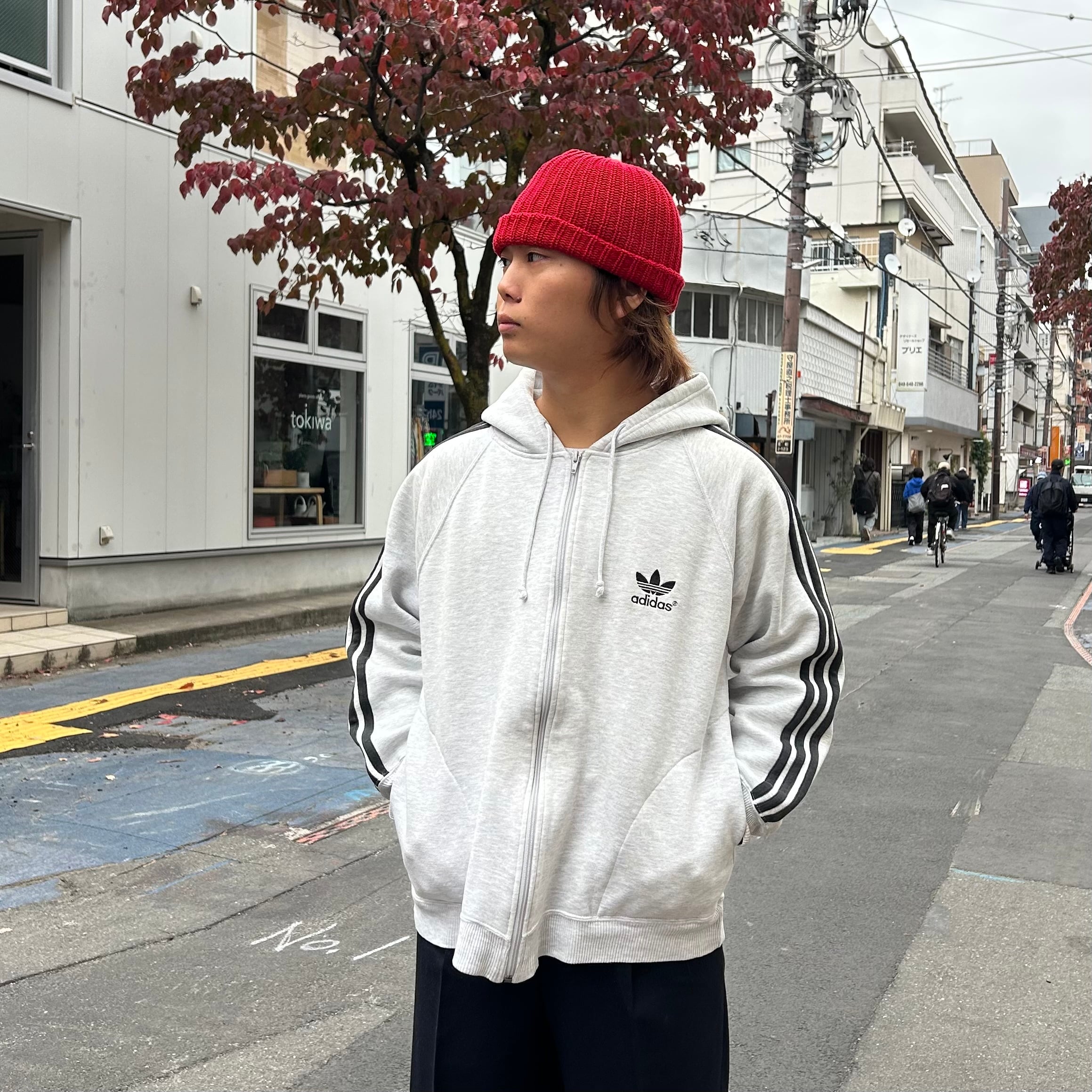 ありそうで意外と無い、良い生地感のadidasのジップパーカーです。