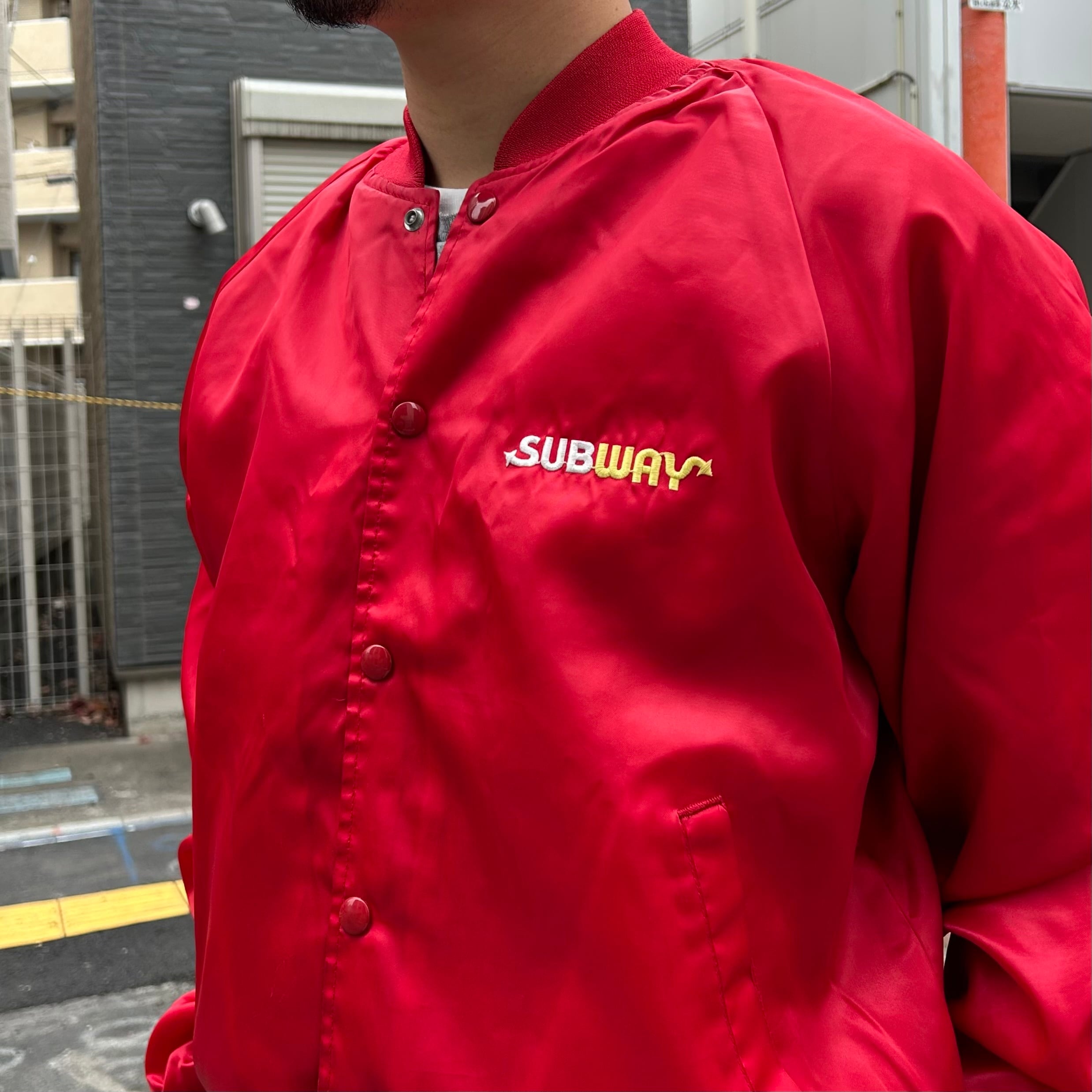 80's USA製 SUBWAY Nylon Varsity Jacket M / サブウェイ 企業物 スタジアムジャケット スタジャン バーシティージャケット ナイロン 古着 ヴィンテージ