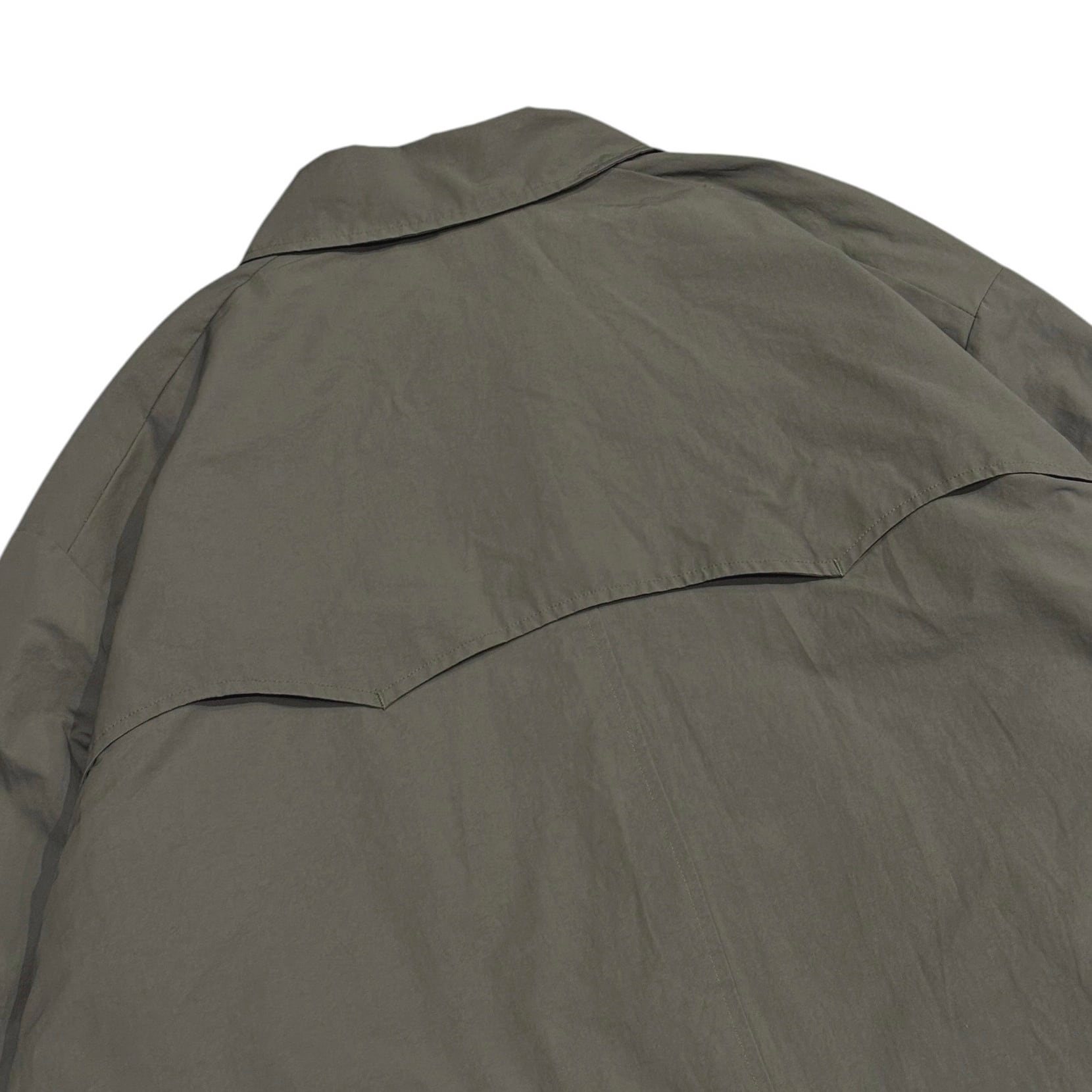 生地は高密度に織り上げられたコットンナイロンポプリンを採用。若干の光沢感と自然なシワ感でコーディネートに馴染みやすい生地です。