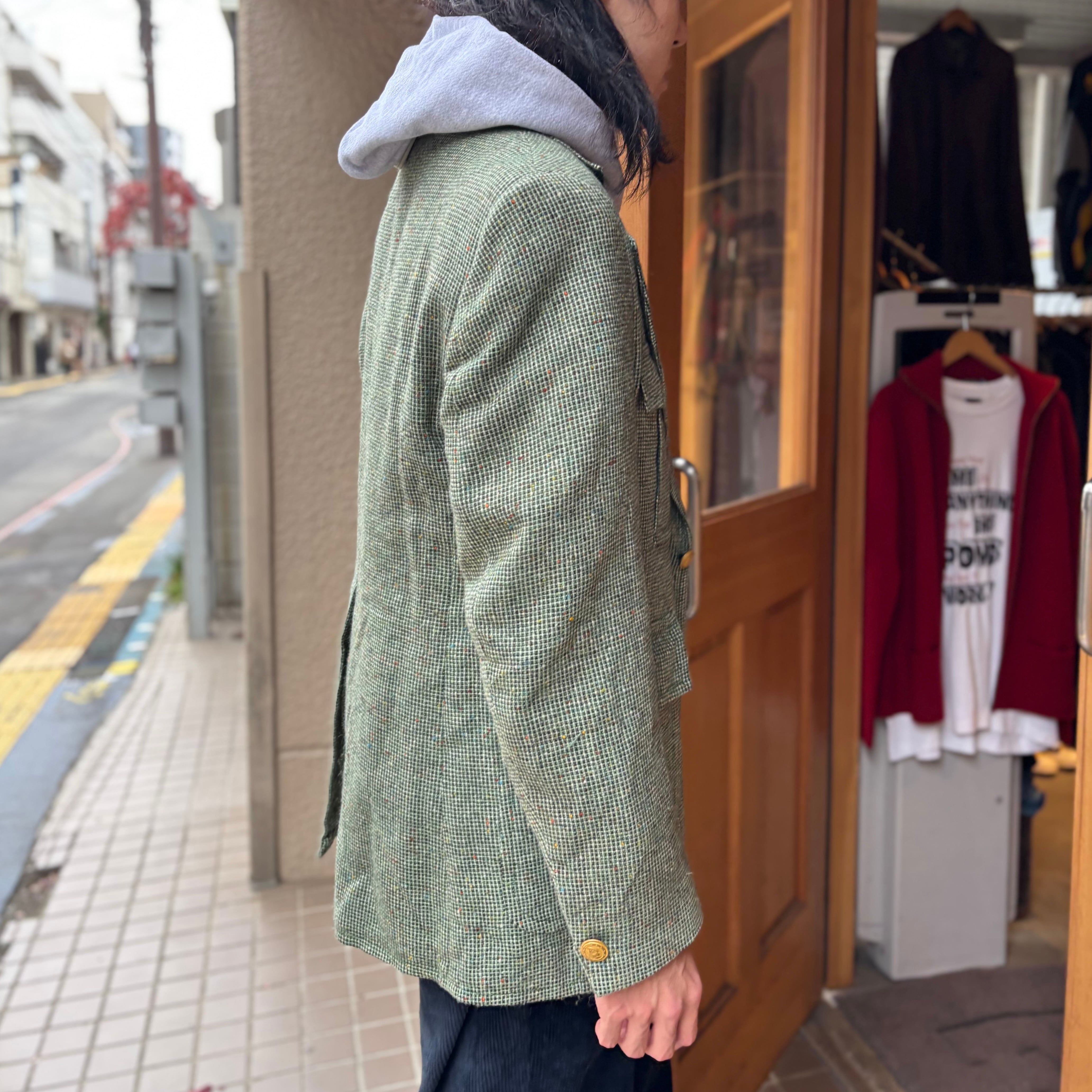 70's Nep Tweed Tailored Jacket XL程度 / サファリ ハンティング ツイード テーラードジャケット 古着 ヴィンテージ