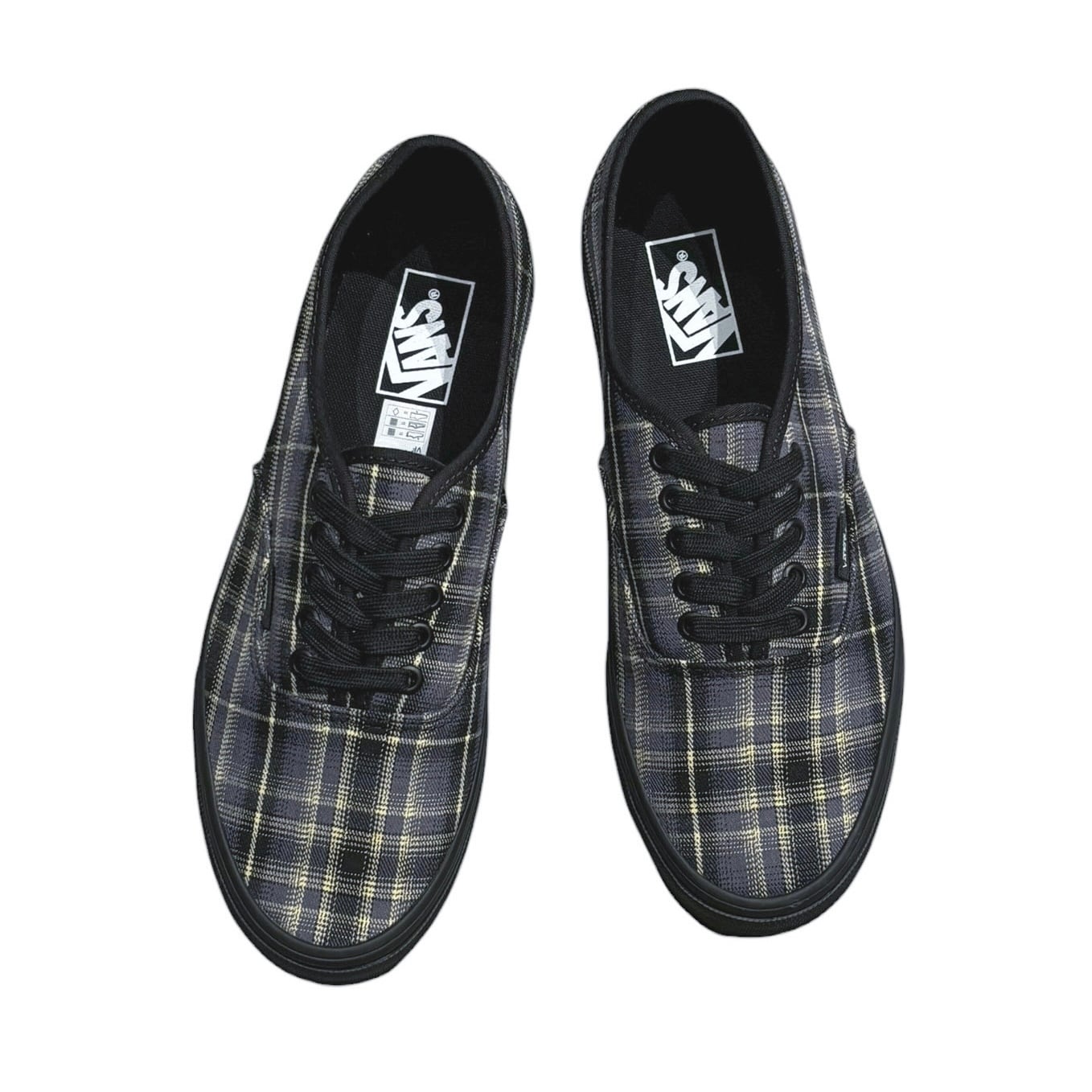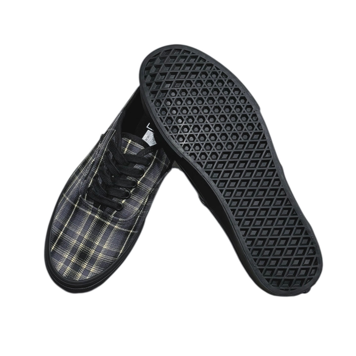 アッパーにはブラック・グレーベースのチェック柄のテキスタイルを使用。