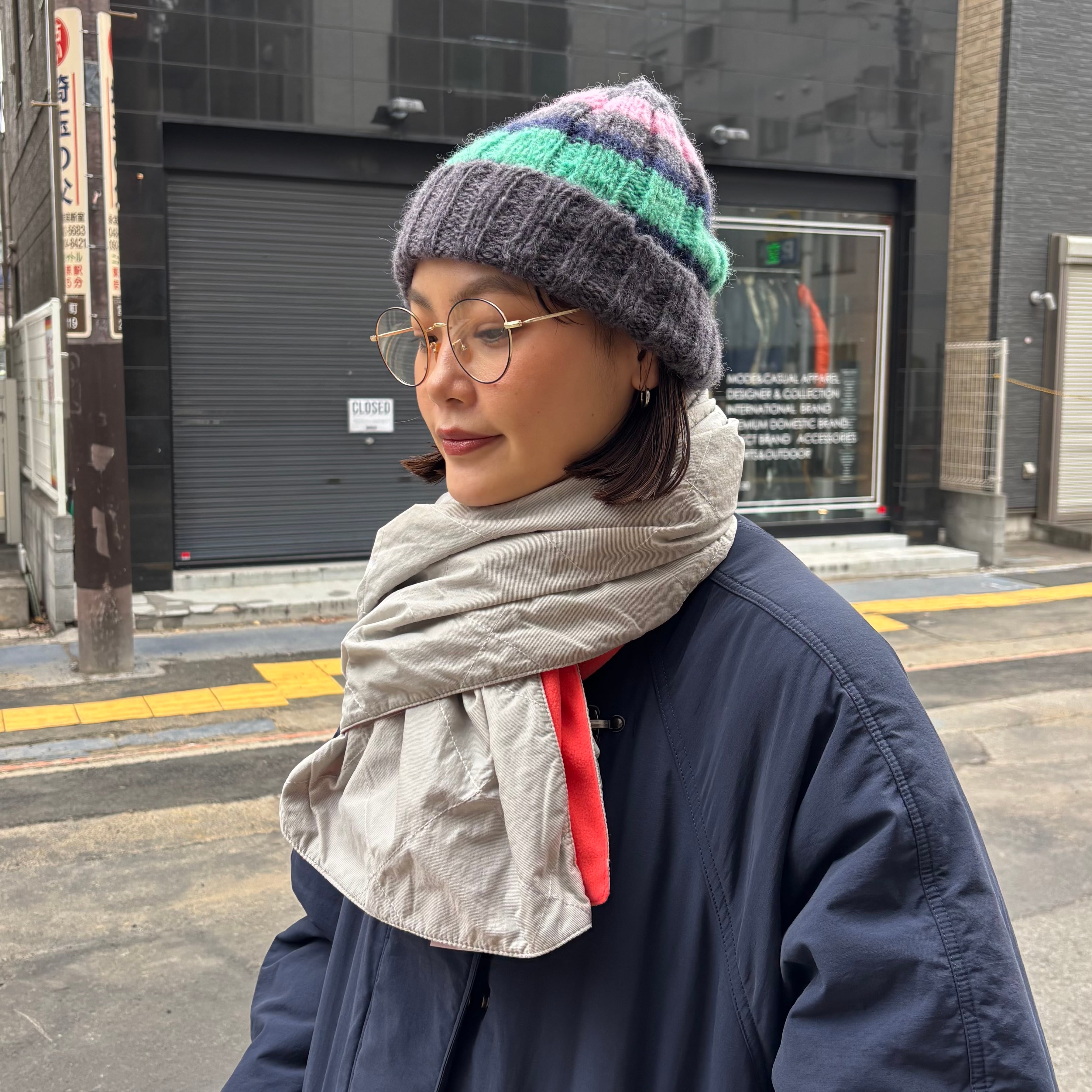サブライムローより、ナイロンキルティングとフリースのリバーシブルマフラーです。