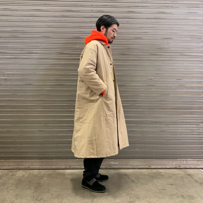イギリスのワークウェアブランドYarmoより、キルティングライニングのロングコートです。