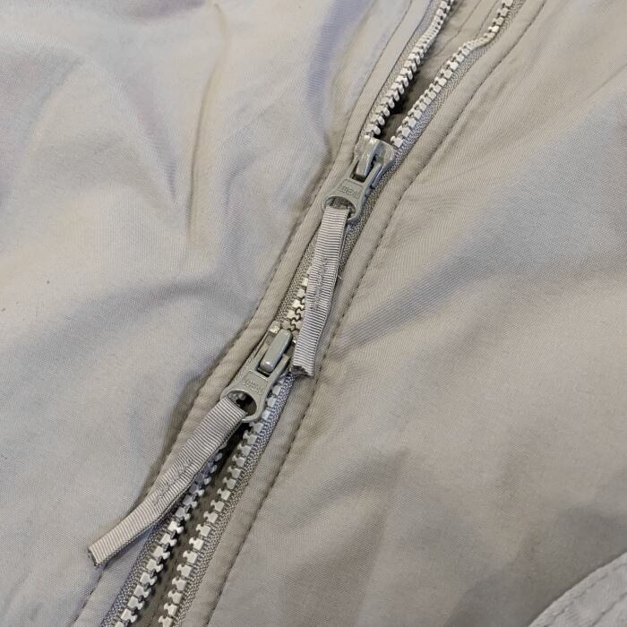 胸に名前・部隊等をくっつけられるベロクロ付属。収納型のフード、肘部分の補強、内側のメッシュ素材のポケット、ポケットの中で調節可能な裾のドローコードなど軍仕様のジャケットです。