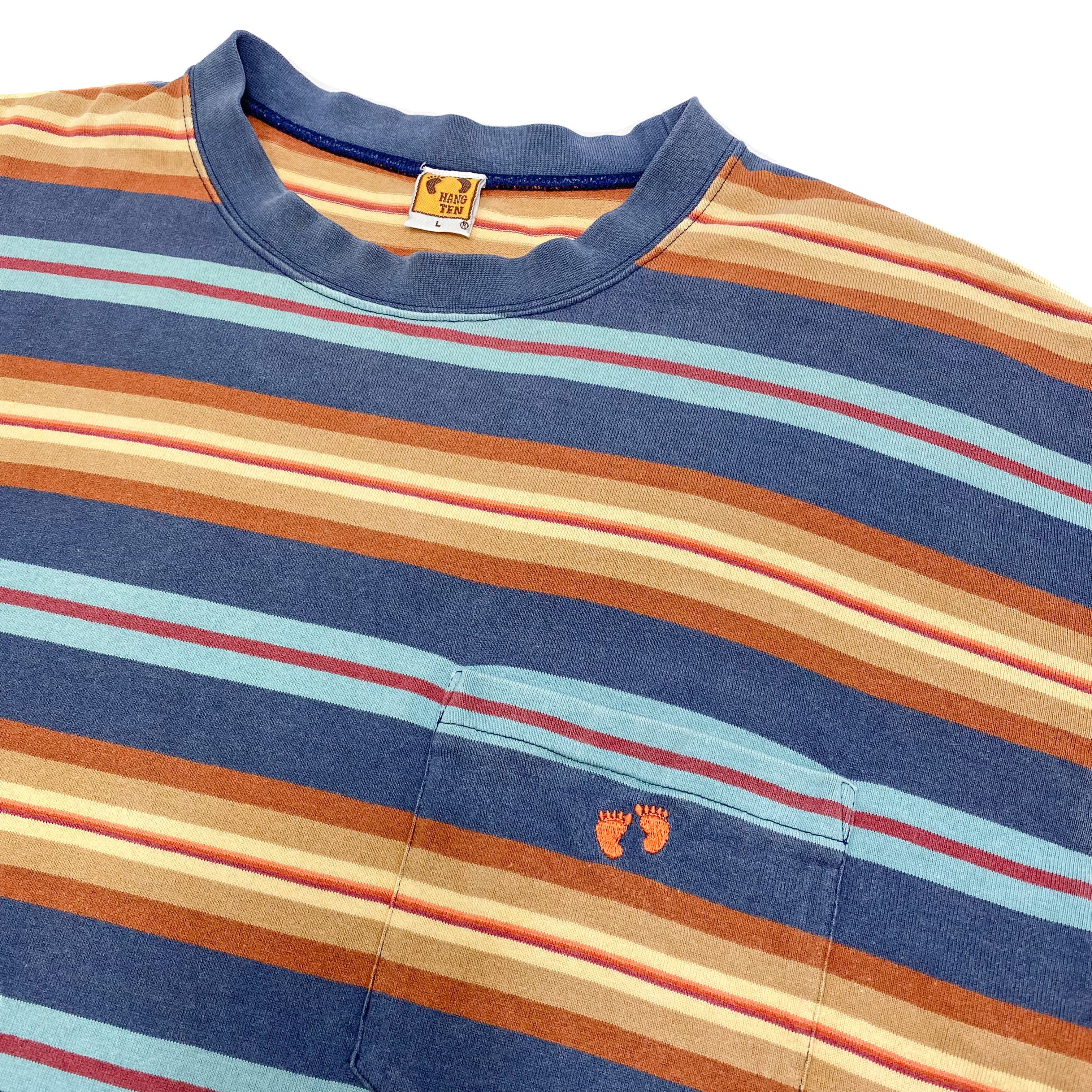 90's "HANG TEN" Multi Border T-Shirt / ハンテン マルチボーダー Tシャツ サーフ 古着