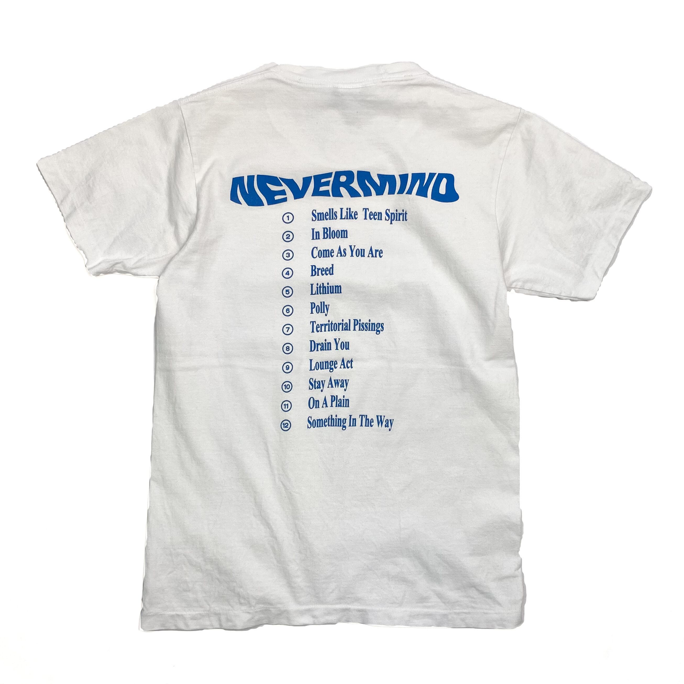 フロントにはネヴァーマインドのジャケプリント、バックには曲順がプリントされています。