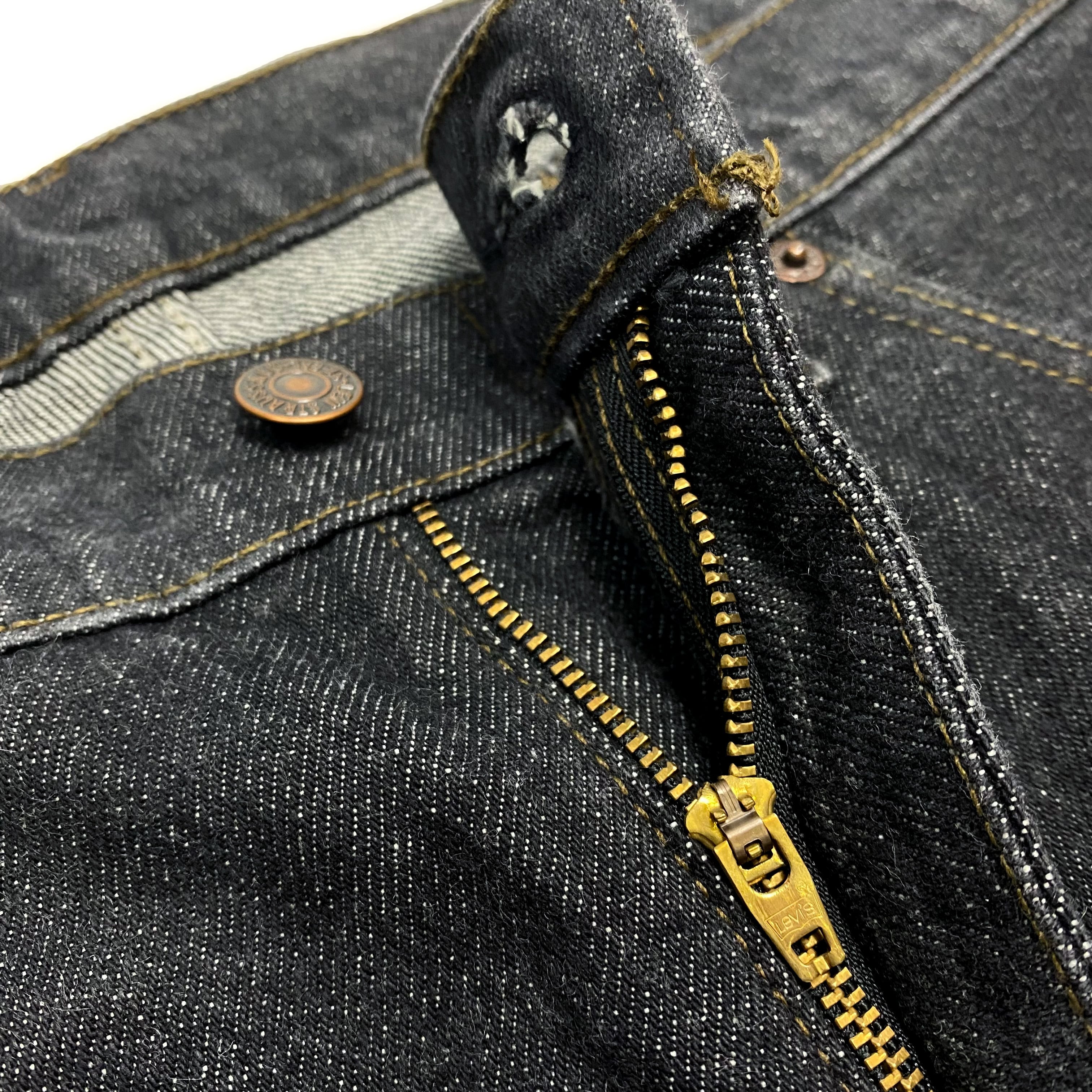 フロントは、ジッパーフライ仕様で、TOPボタン裏の刻印は553です。