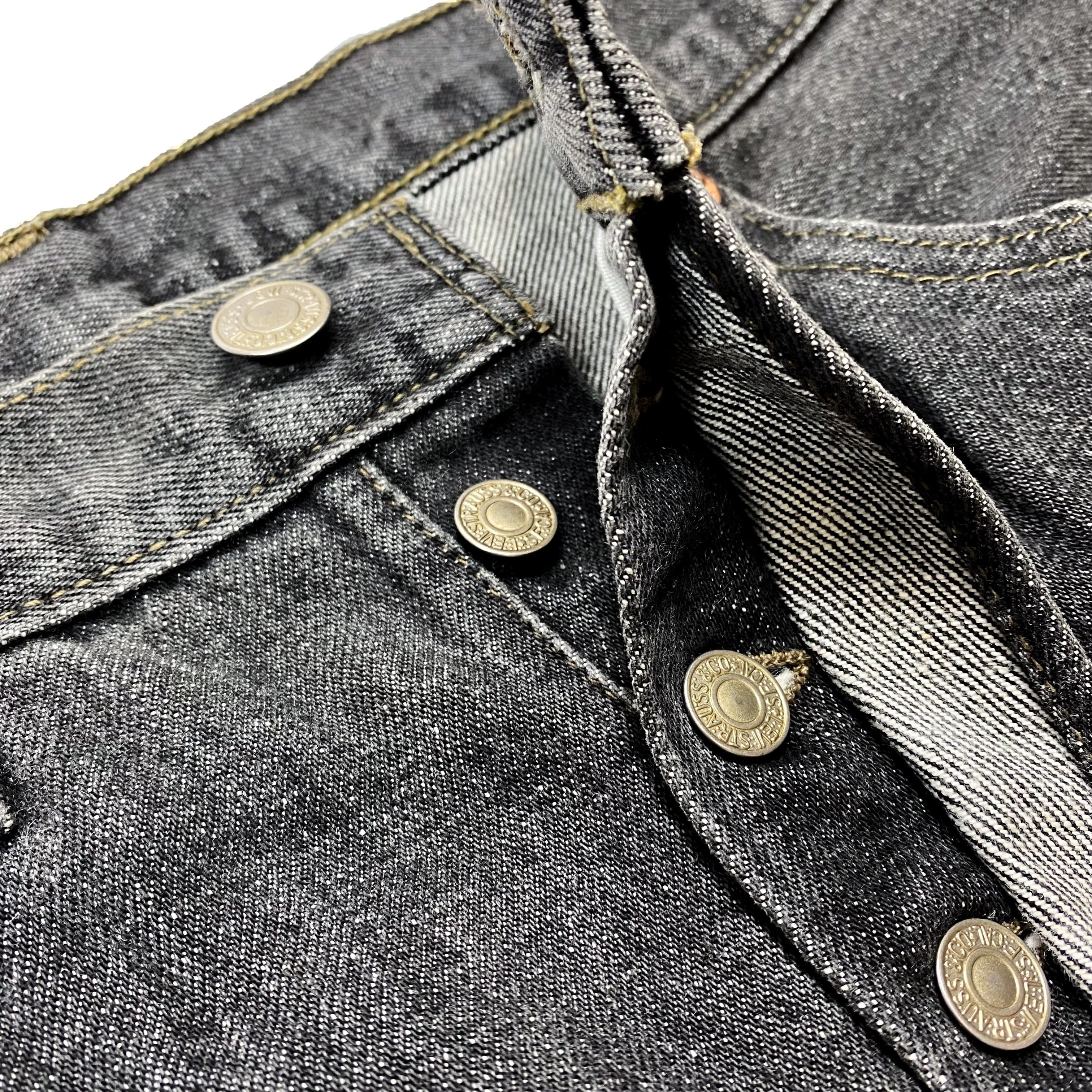 02年製のアメリカ製、リーバイスの501ブラックデニムパンツです。