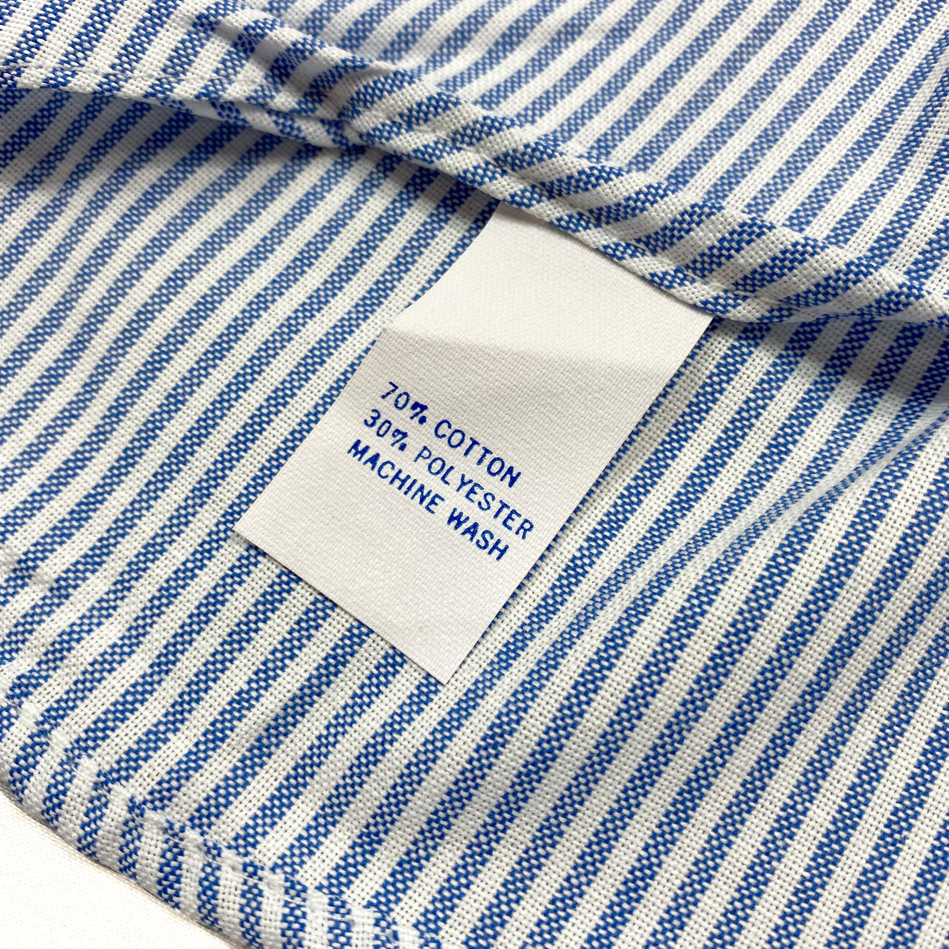 ホワイトのオックスフォード地にサックスブルーのストライプが入っています。