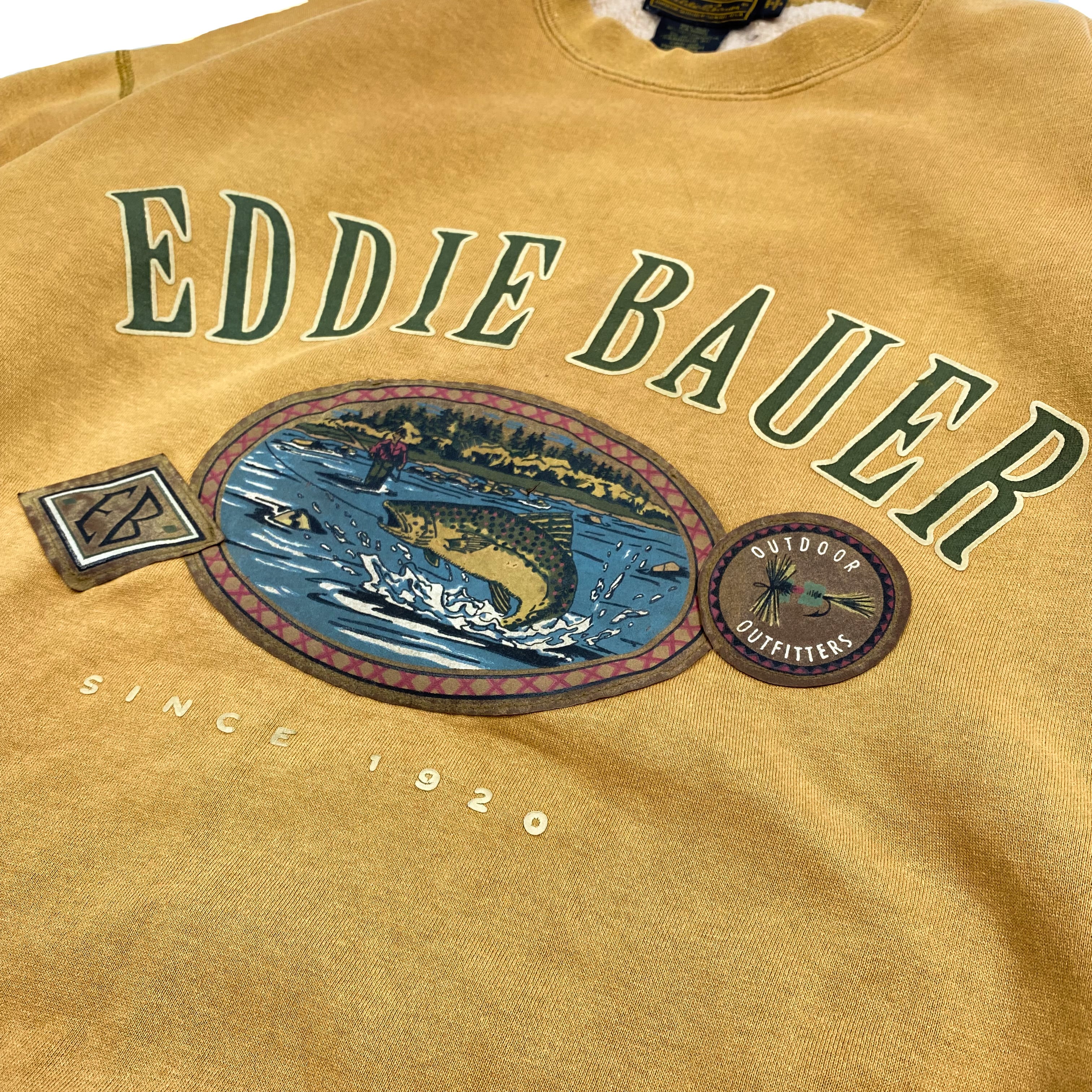90's "Eddie Bauer" Printed Sweat / エディーバウアー プリント スウェット トレーナー フィッシング 古着