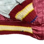 A面、左脇袖にシミ、背面刺繍に気にならない程度のほつれ、左袖口リブ小穴あり