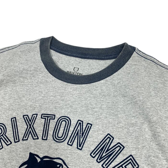 BRIXTONより、フロッキー風のプリントが施されたトリムTシャツです。