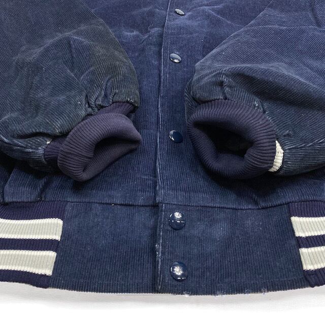 Unknown Corduroy Insulation Versity Jacket / コーデュロイ バーシティージャケット 中綿 スタジャン ネイビー 細畝 XL ビッグサイズ 古着