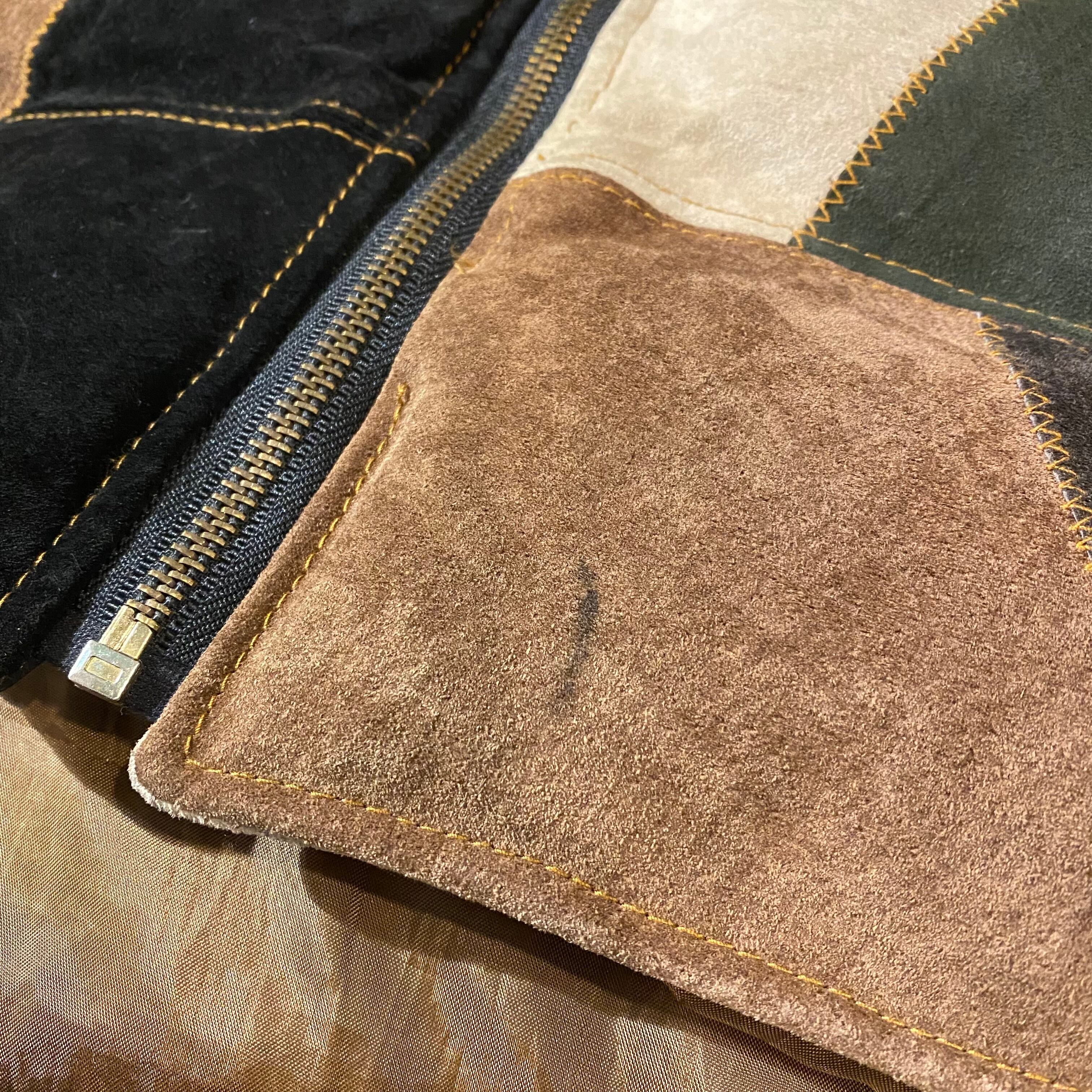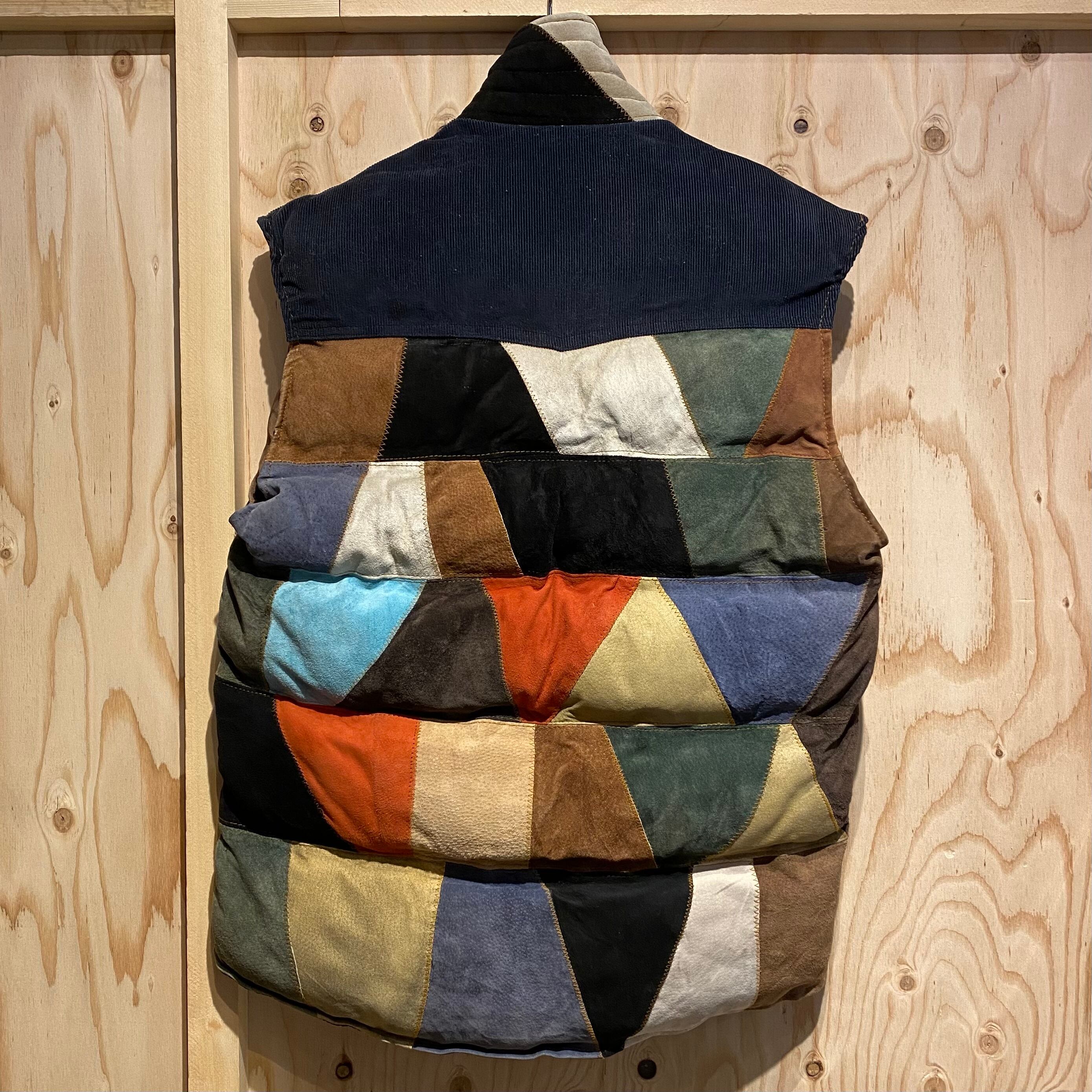 パッチワークレザーの中綿入りベストです。