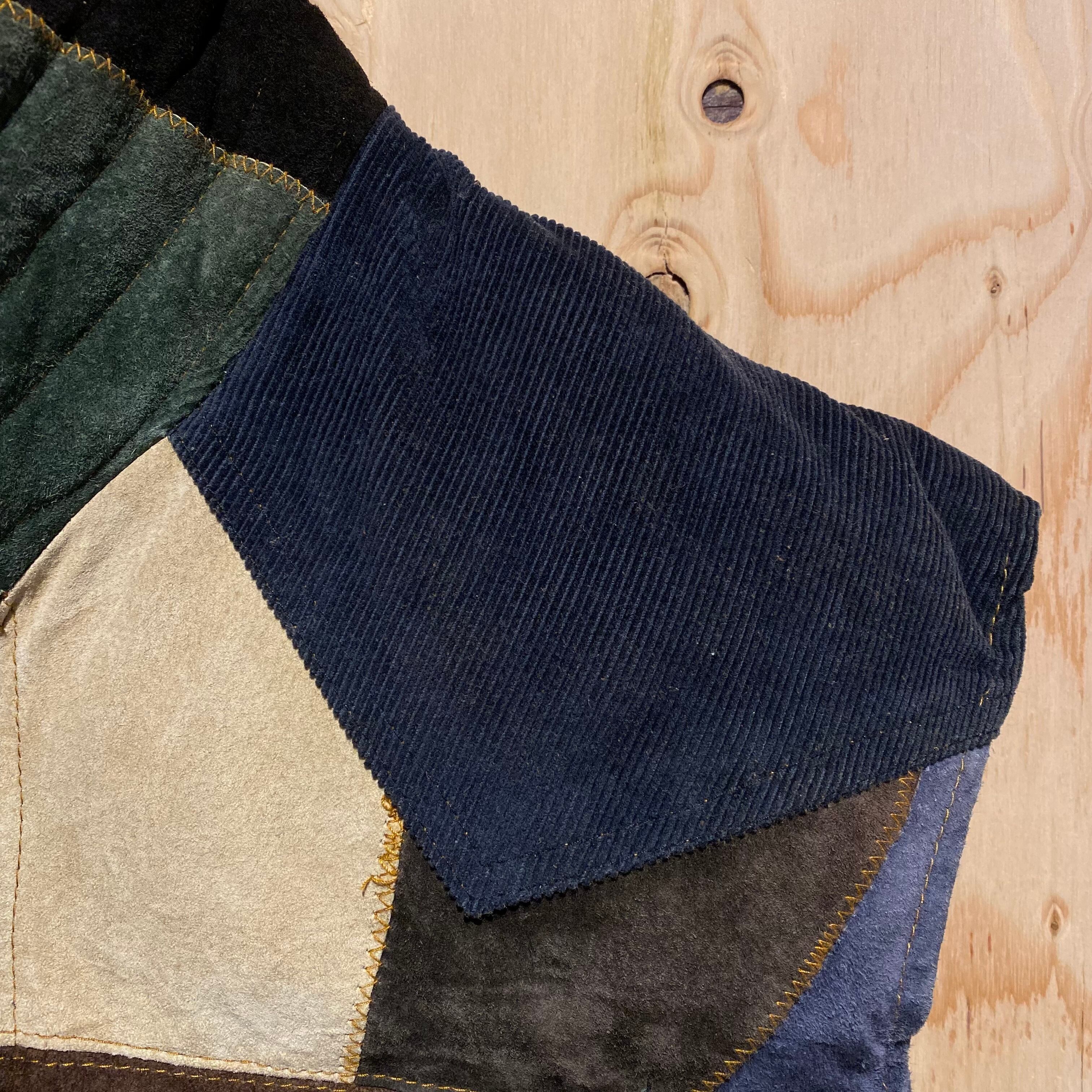 Unknown Insulation Patchwork LeatherVest / レザー ベスト 中綿ベスト コーデュロイ クレイジー ヴィンテージ 古着
