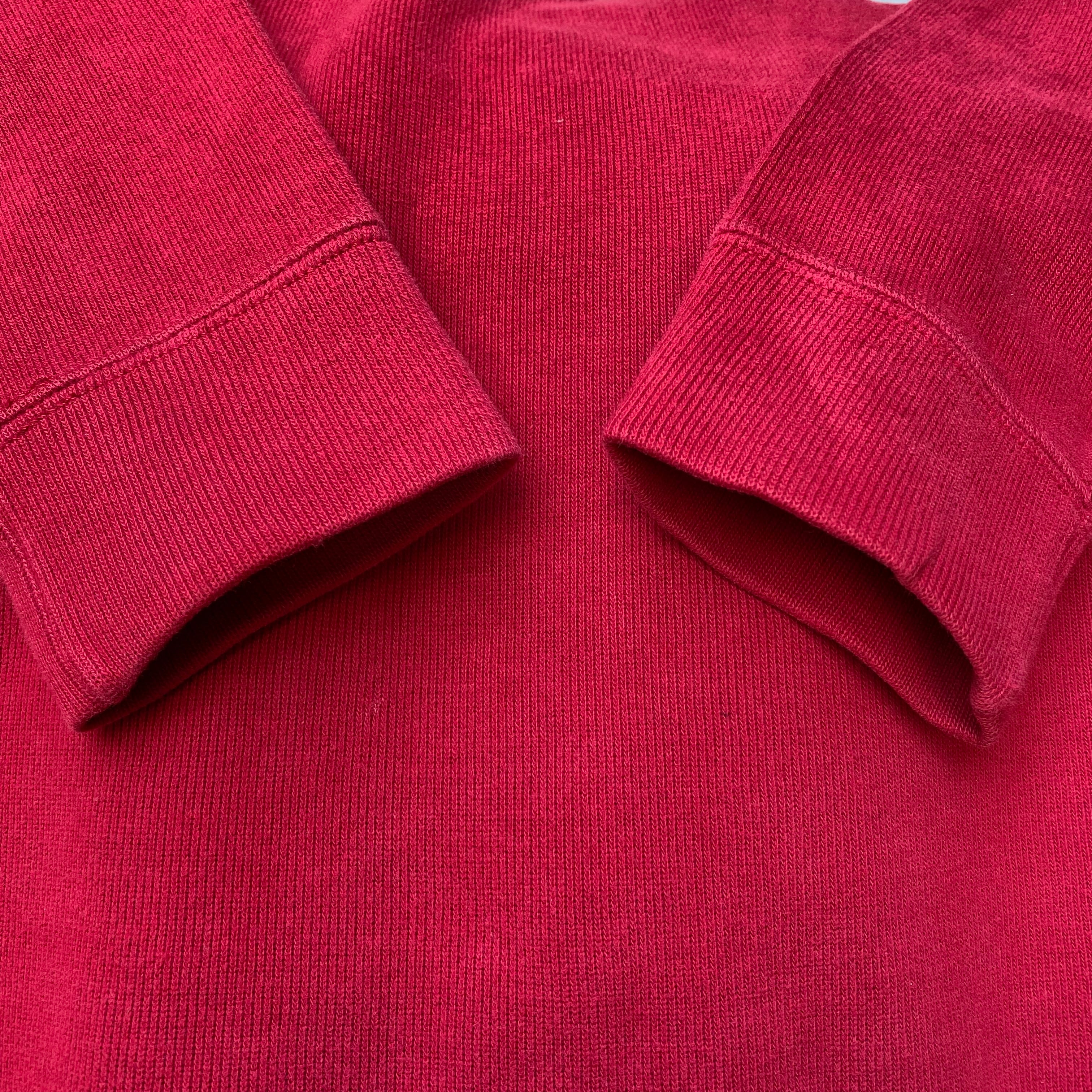 柔らかい印象のレッドなので、レイヤードにはもちろんですが、一枚でも着用していただけるカラーです。