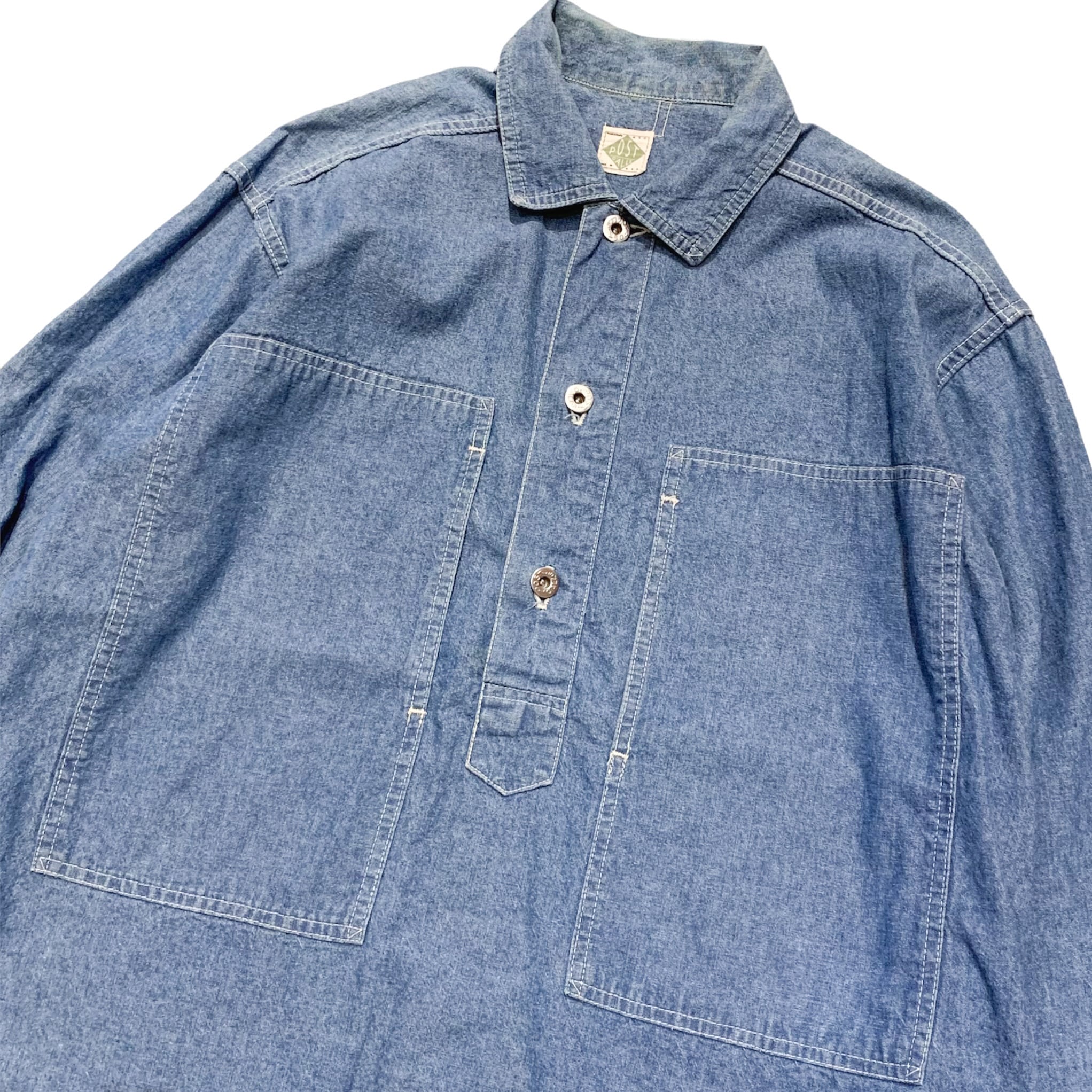 90's USA製 POST OVERALLS Chambray Pullover Jacket / ポストオーバーオールズ アーミー シャンブレー プルオーバー 古着