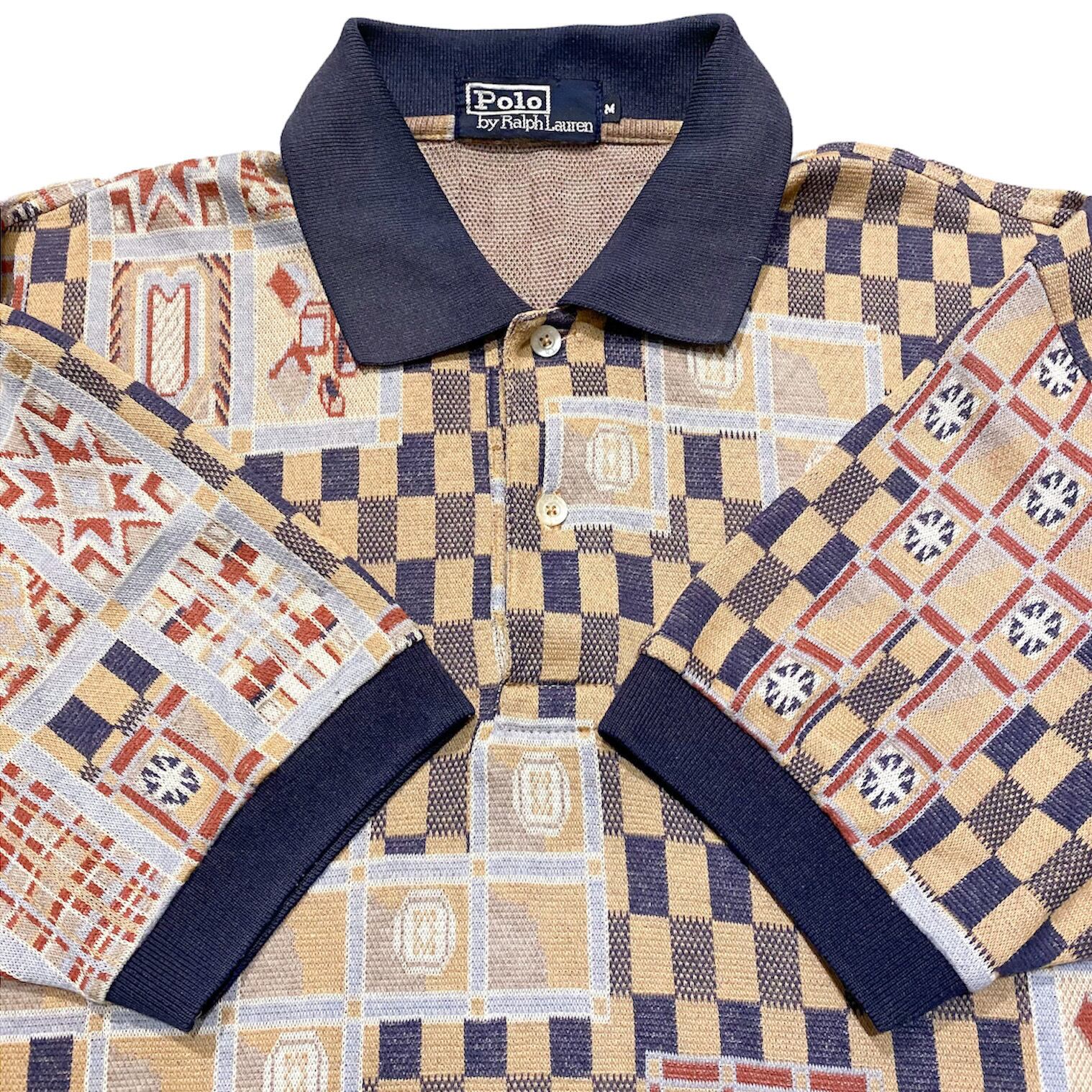 90's Polo Ralph Lauren Jacquard Polo Shirt / ポロ ラルフローレン ジャガード 総柄 ポロシャツ 古着