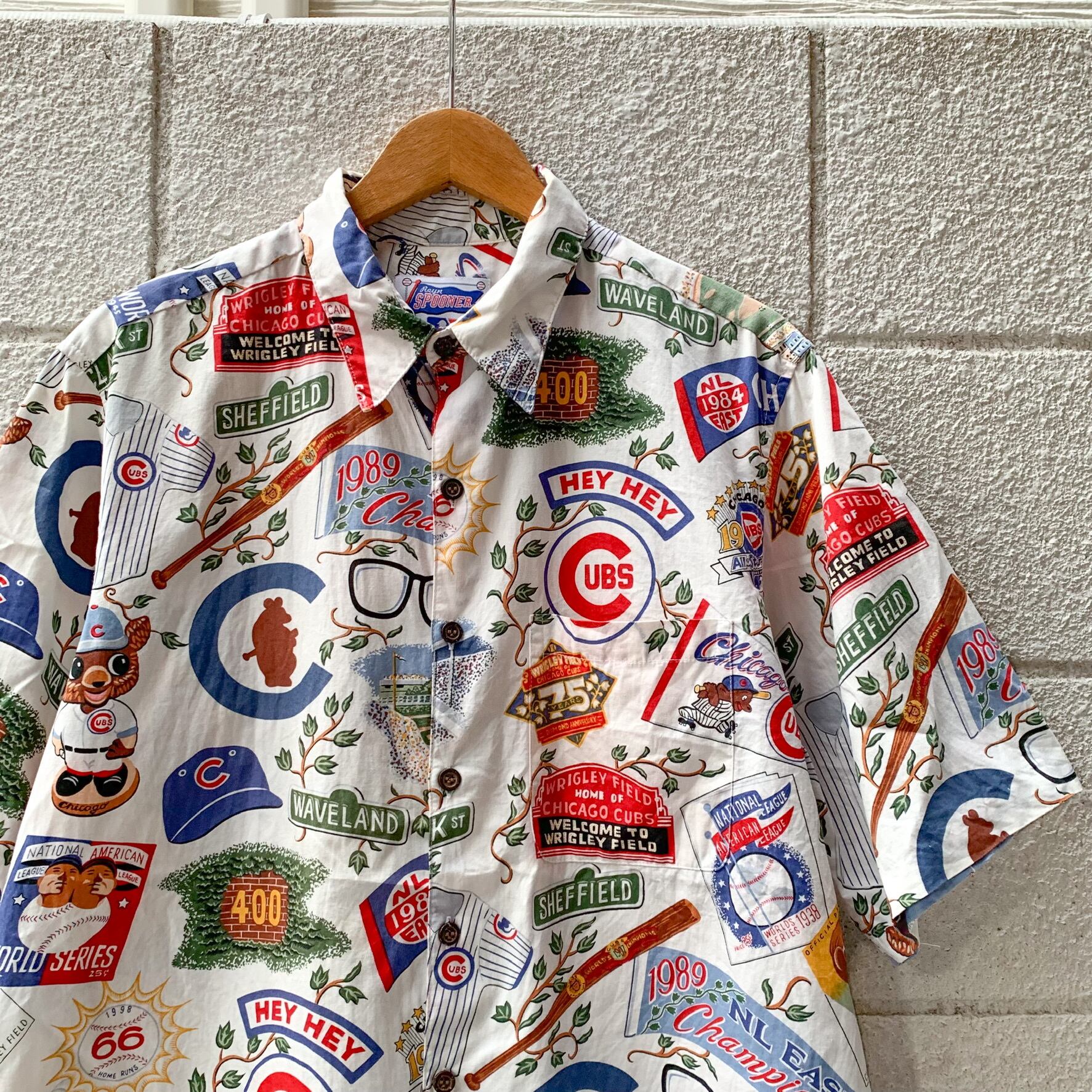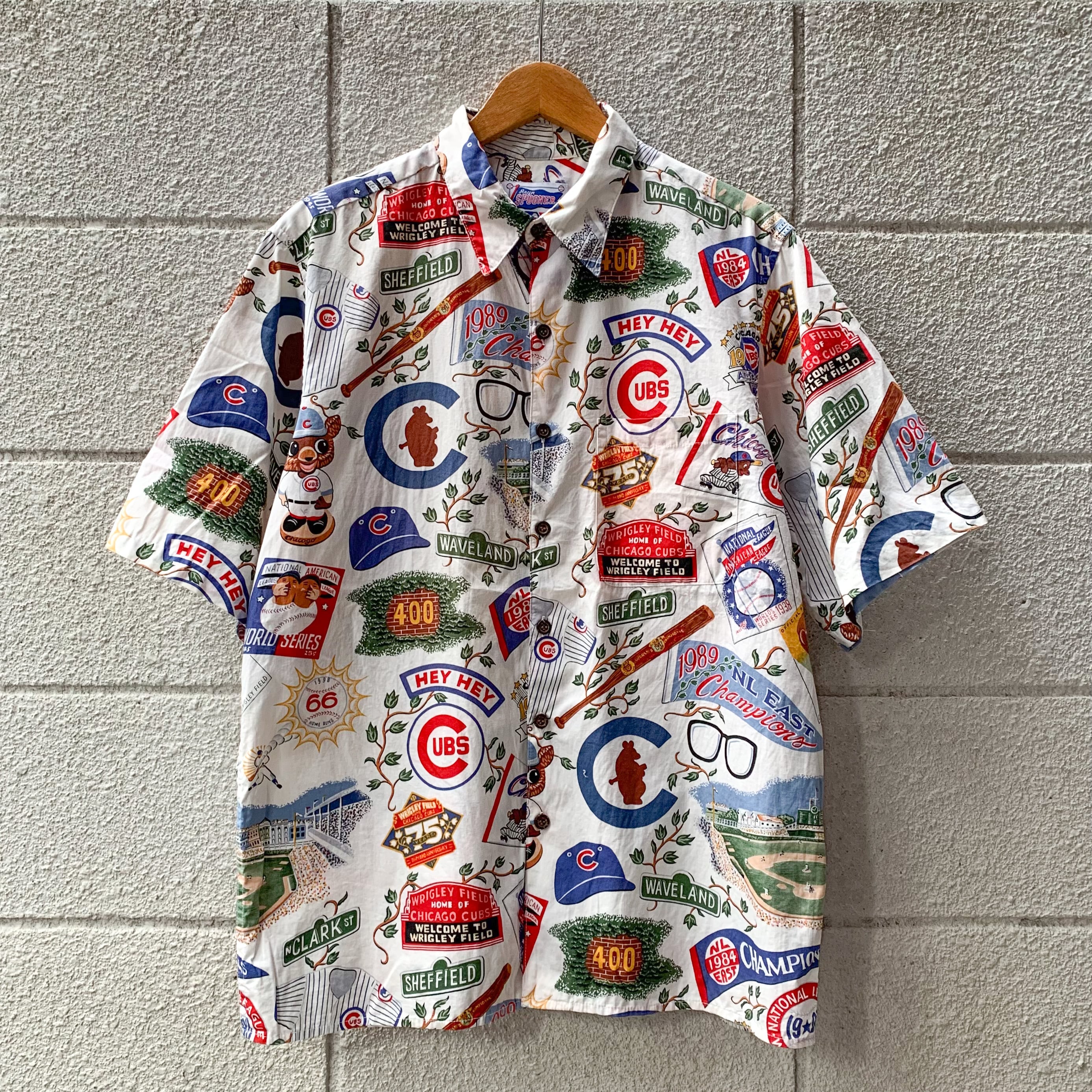 Reyn Spooner × MLB CHICAGO CABS S/S Hawaiian Aloha Shirt / レインスプーナー シカゴ カブス メジャーリーグ アロハ ハワイアンシャツ 総柄 古着