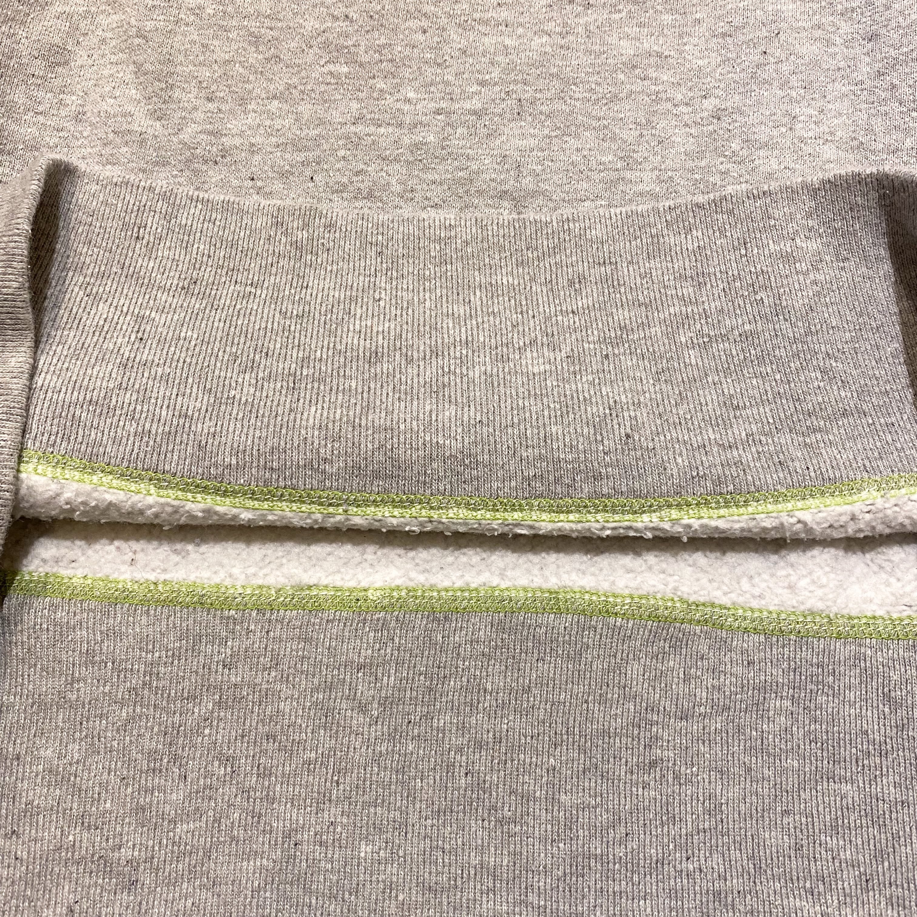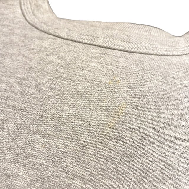 60〜70年代のタグが付いていますが、ふっくらとした綿100%の生地感や、長めの袖と裾のリブ、バインダーネック、セットインスリーブなど、50年代のスウェットの作りと同様です。