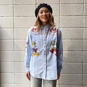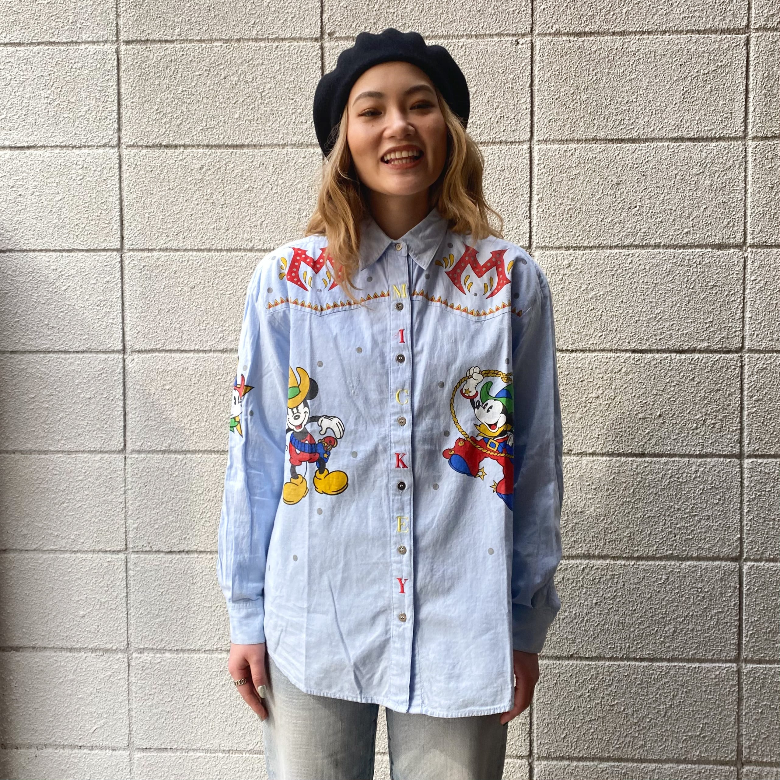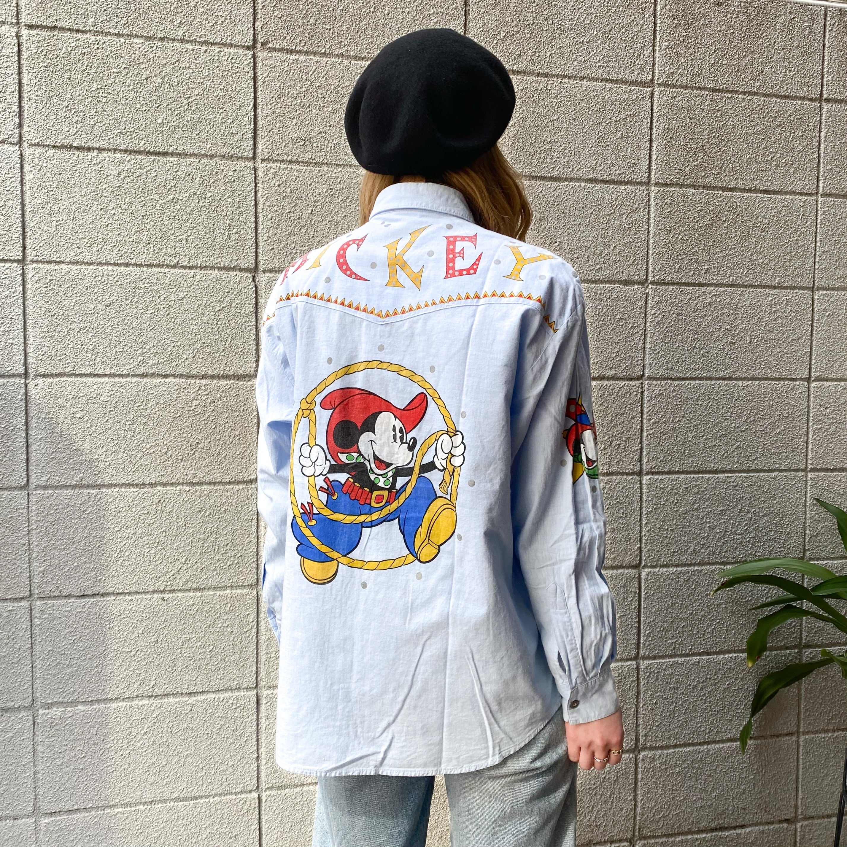 90's Mickey & Co. Printed Western Shirt 両面プリント / ディズニー ミッキー キャラクター オフィシャル ウエスタン シャツ 古着 ヴィンテージ