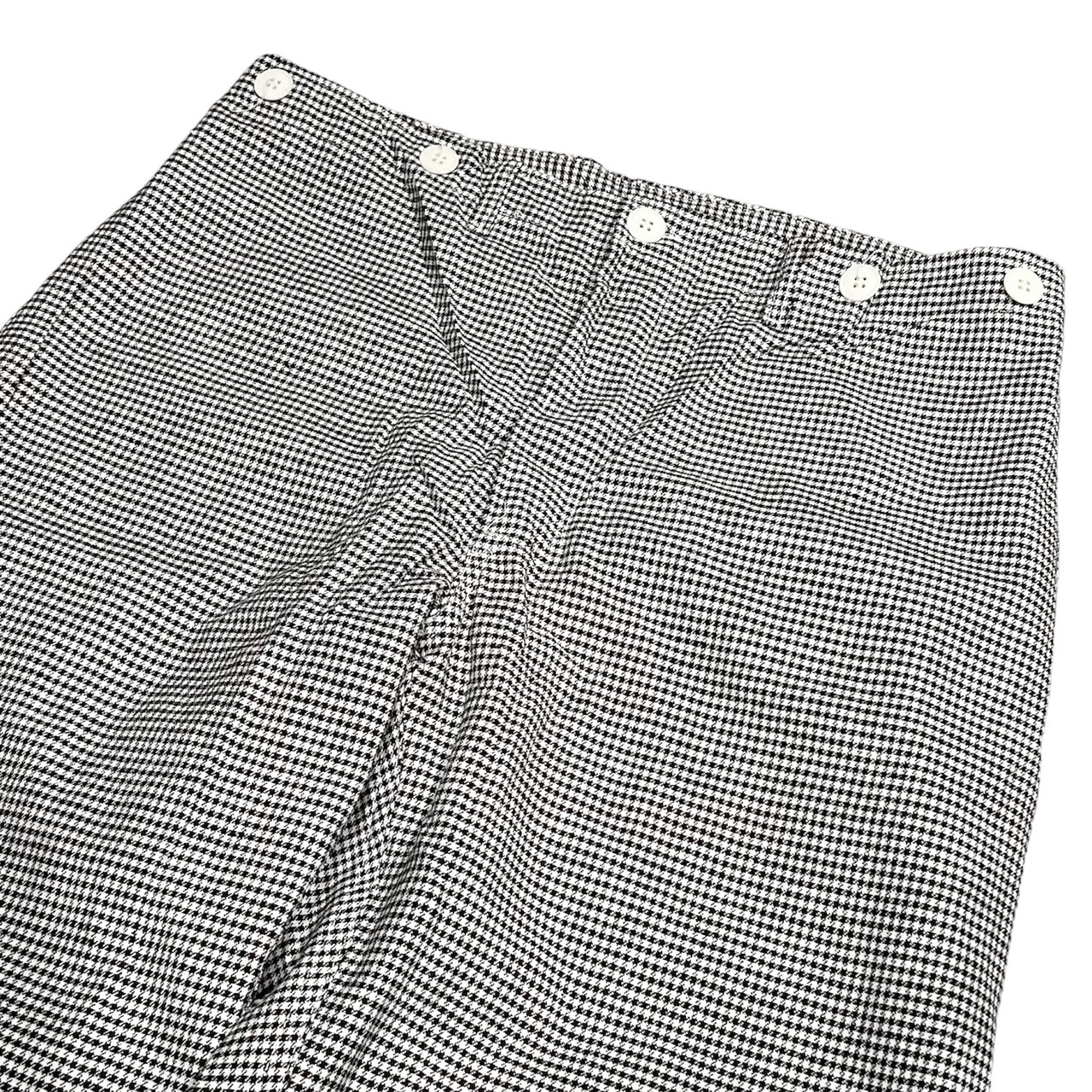 ハウンドトゥース柄(千鳥格子)が特徴的で、ミリタリーパンツにしてはすっきりとしたシルエットなので、上品に着用できます。