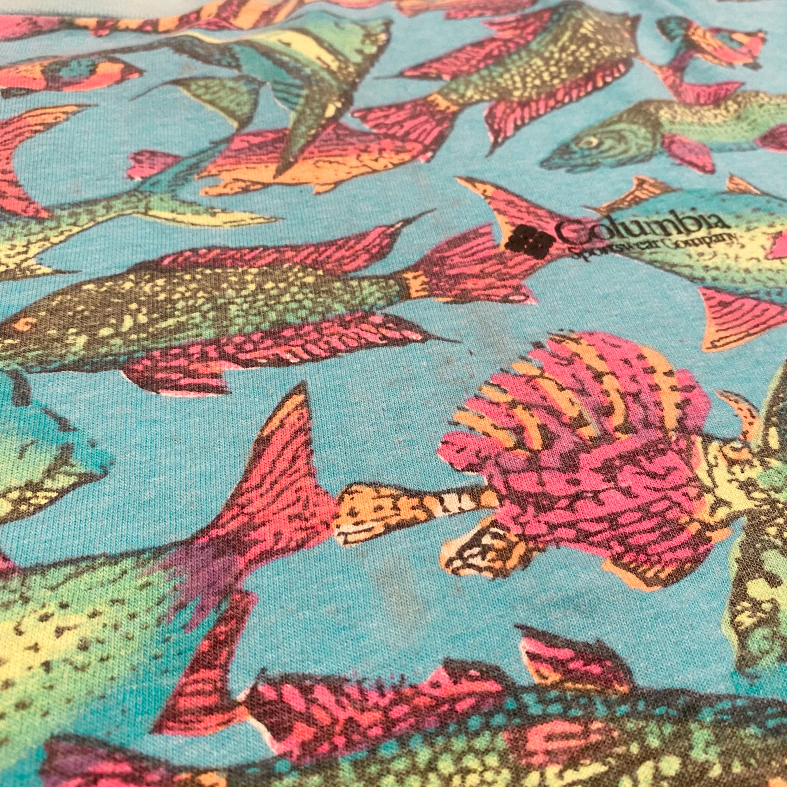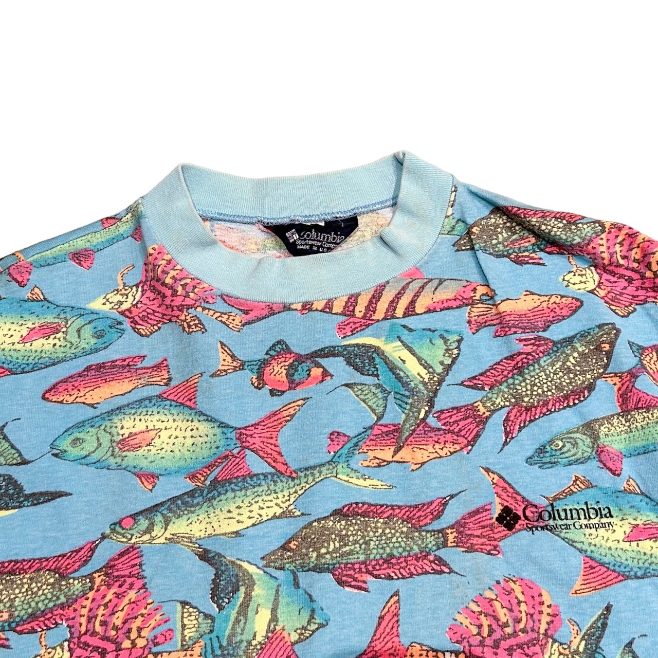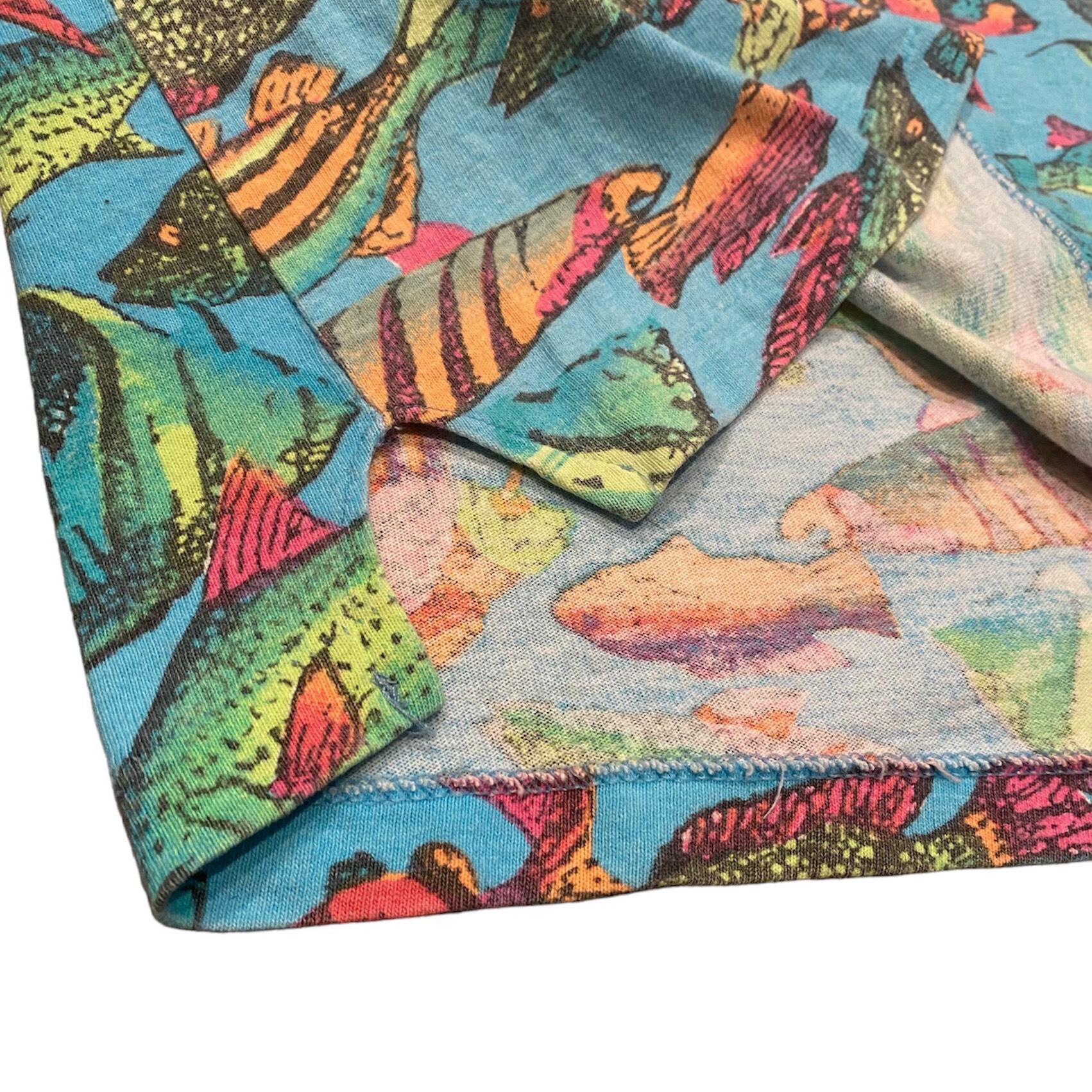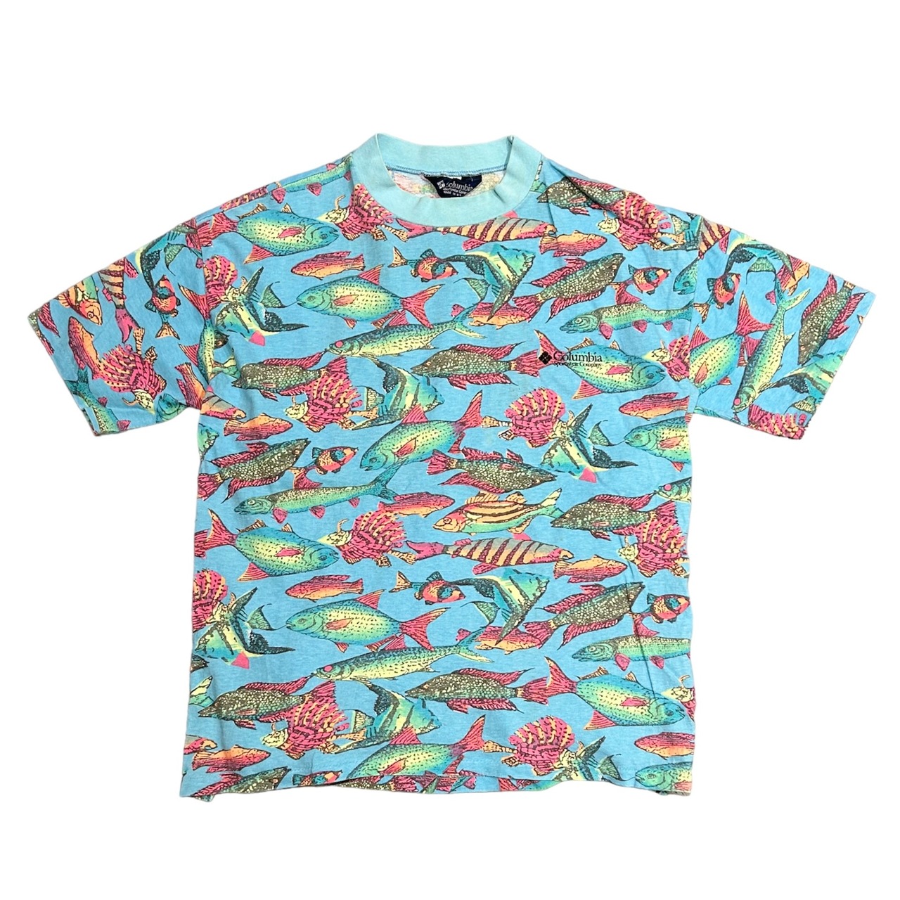 80's Columbia 紺タグ 魚柄 T-Shirt / コロンビア 総柄 Tシャツ 古着 ヴィンテージ