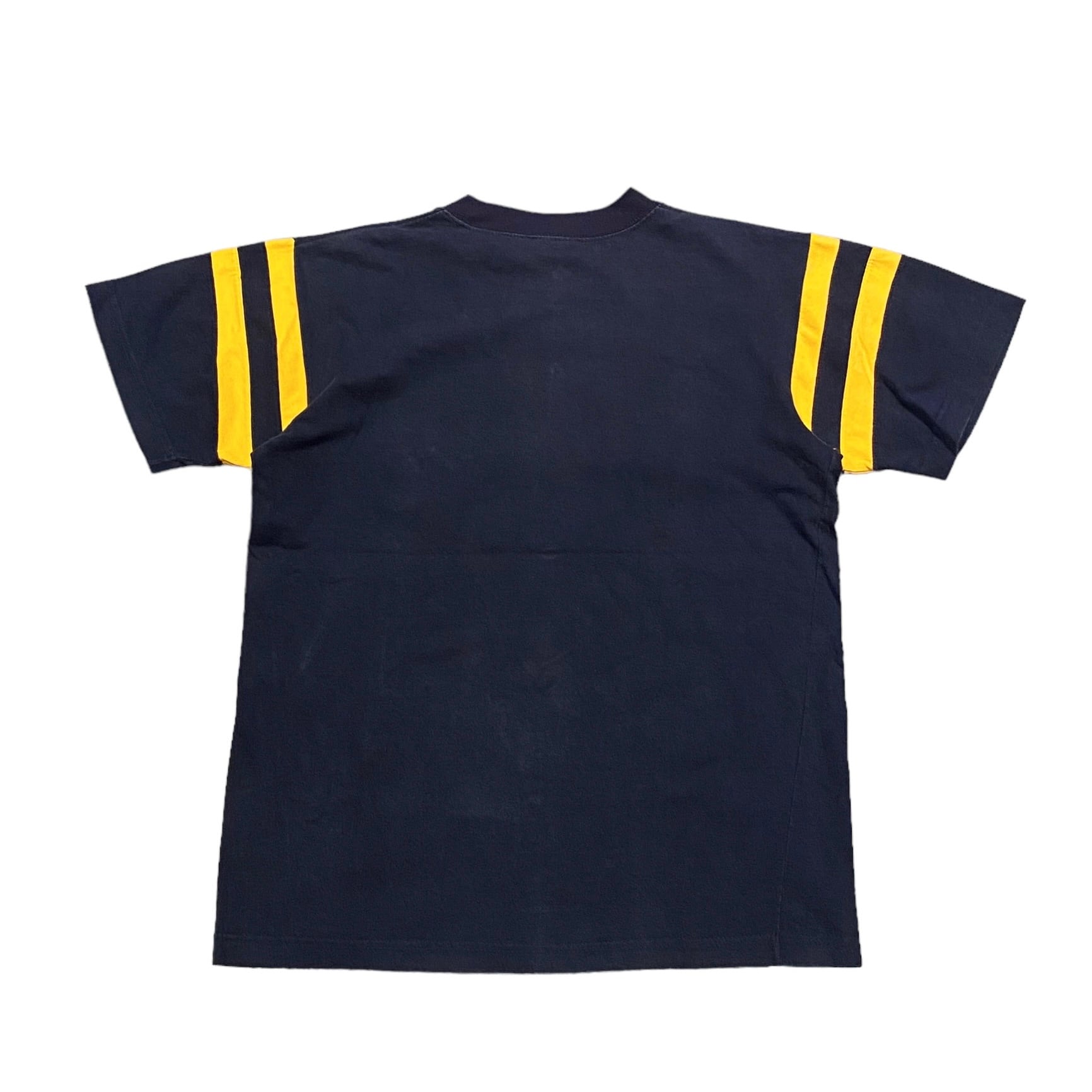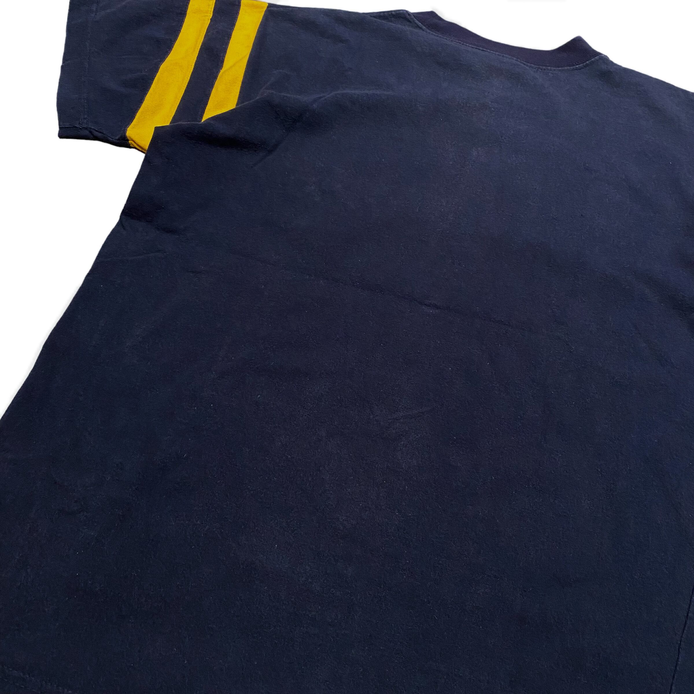 ボディーのカラーはネイビーで袖とプリントがイエローで施されています。