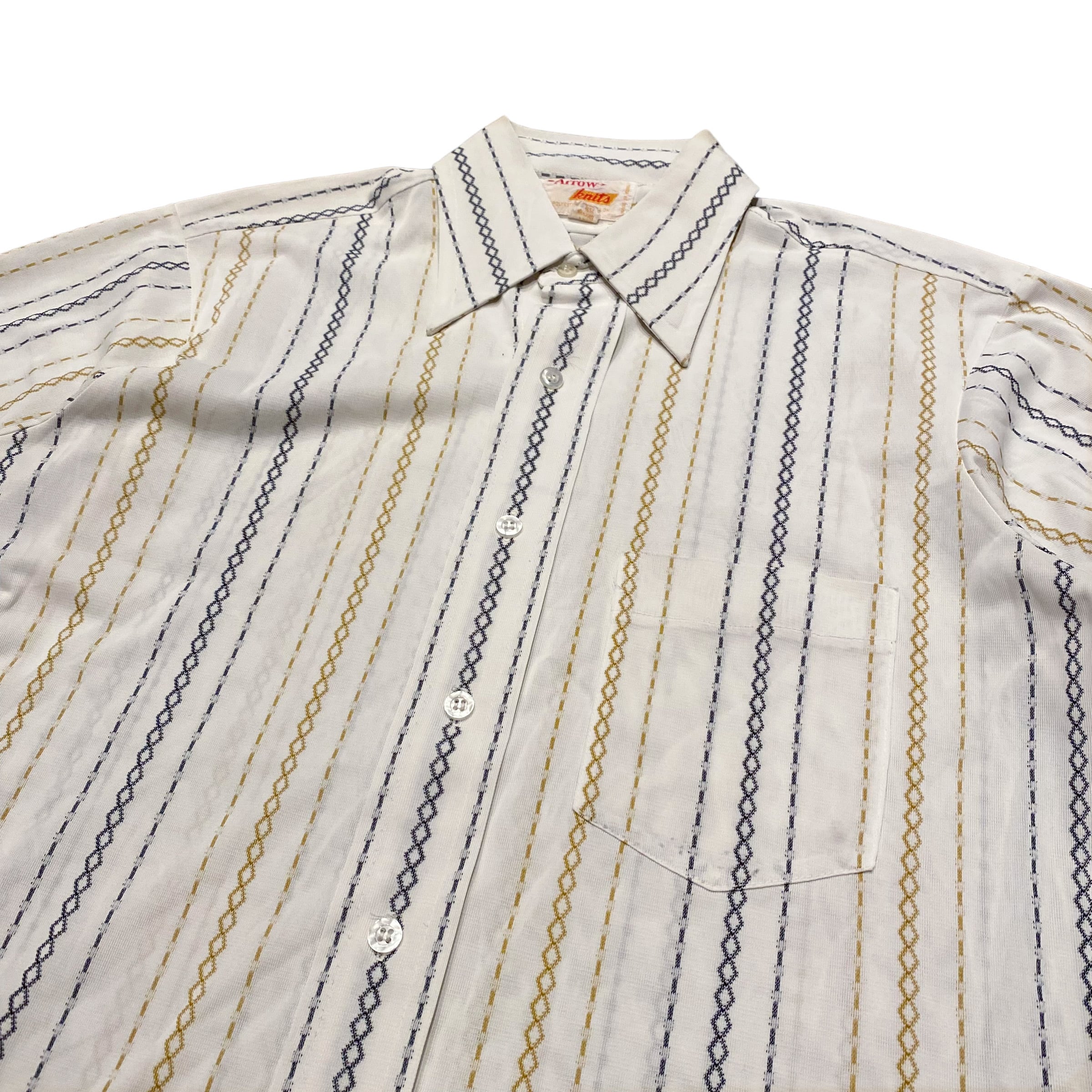 70's Arrow Knits S/S Polyester Shirt / アロー 半袖シャツ ポリシャツ 総柄 古着 ヴィンテージ