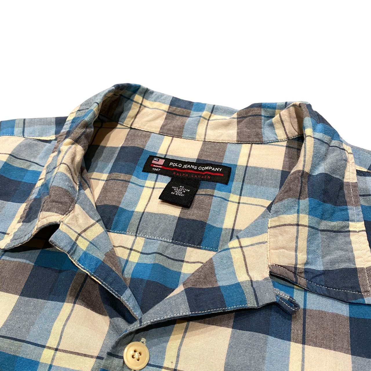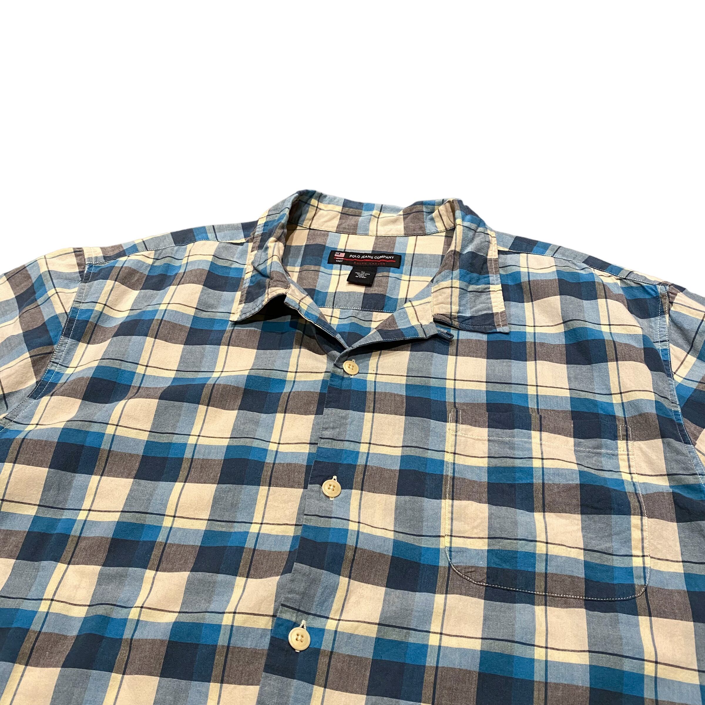 90's Polo Jeans Ralph Lauren S/S Open Colar Shirt XL / ポロジーンズ ラルフローレン チェック柄 オープンカラー シャツ 半袖 開襟 古着 ヴィンテージ
