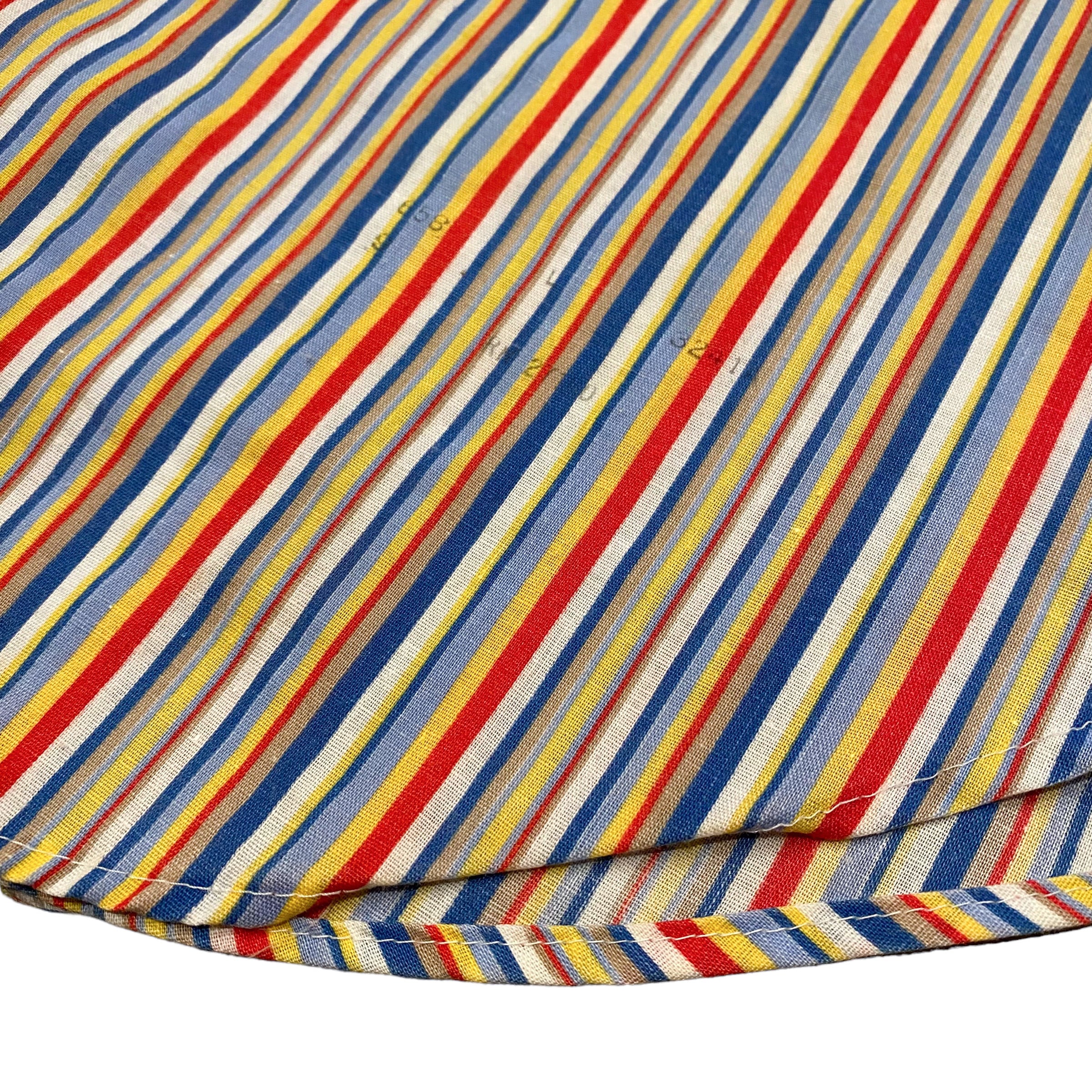 薄手のポリコットン素材の生地にマルチストライプ柄が当時らしい良い雰囲気です。