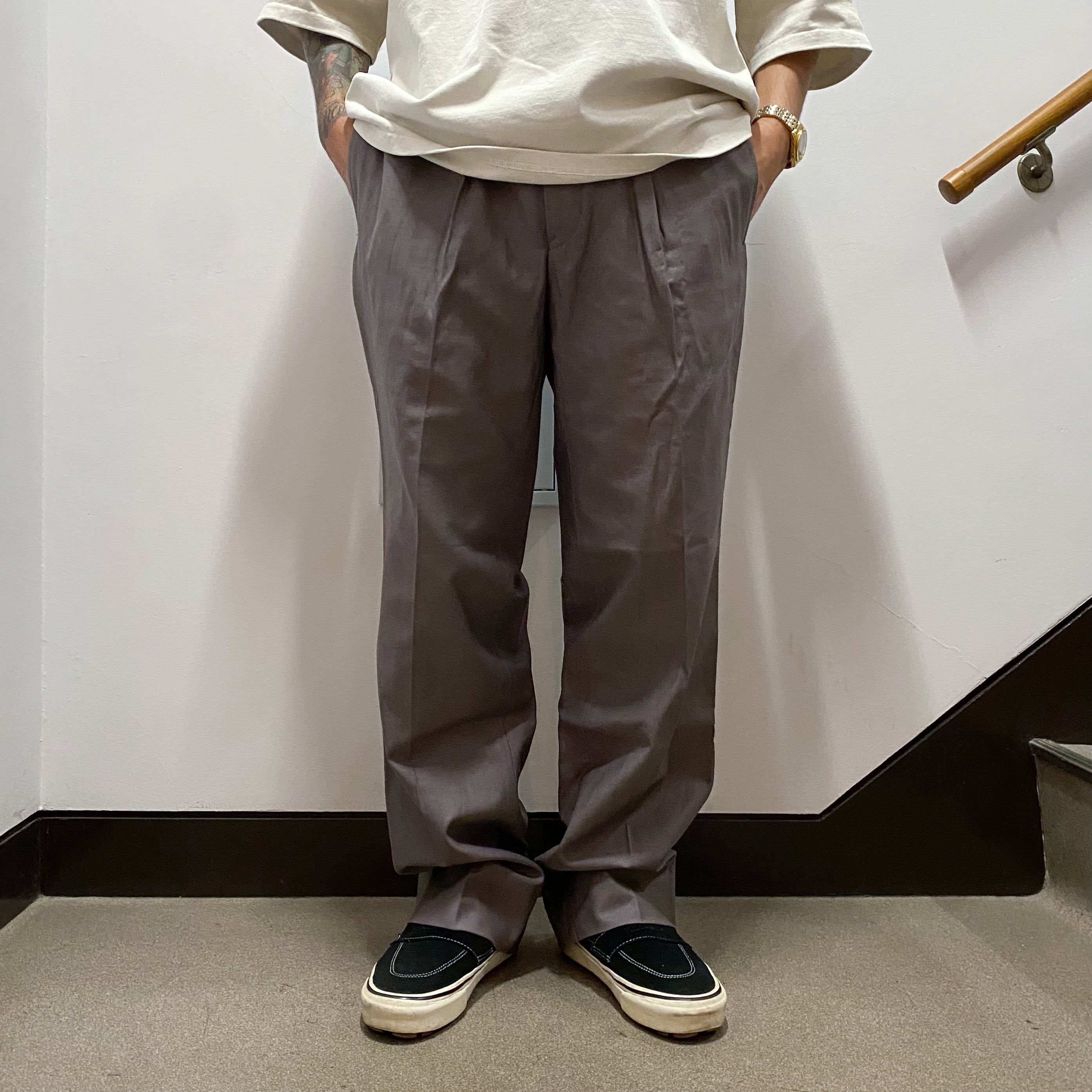 1タック入りの程よくゆとりのあるストレートシルエットです。