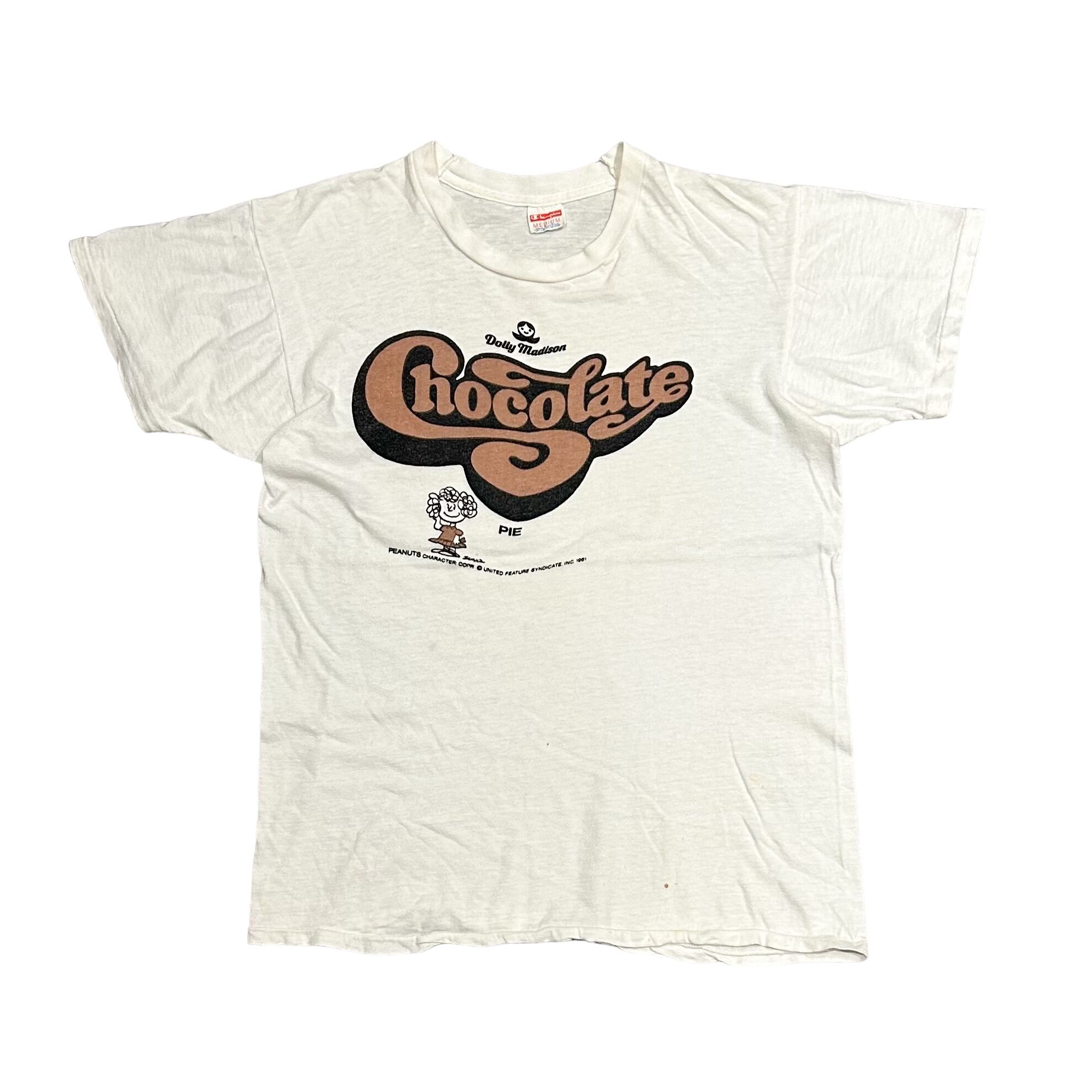 70's USA製 Champion 赤バータグ "Dolly Madison Chocolate Pie" Peanuts Frieda T-Shirt M / チャンピオン ドリーマディソン ピーナッツ フリーダ Tシャツ キャラクター 古着 ヴィンテージ