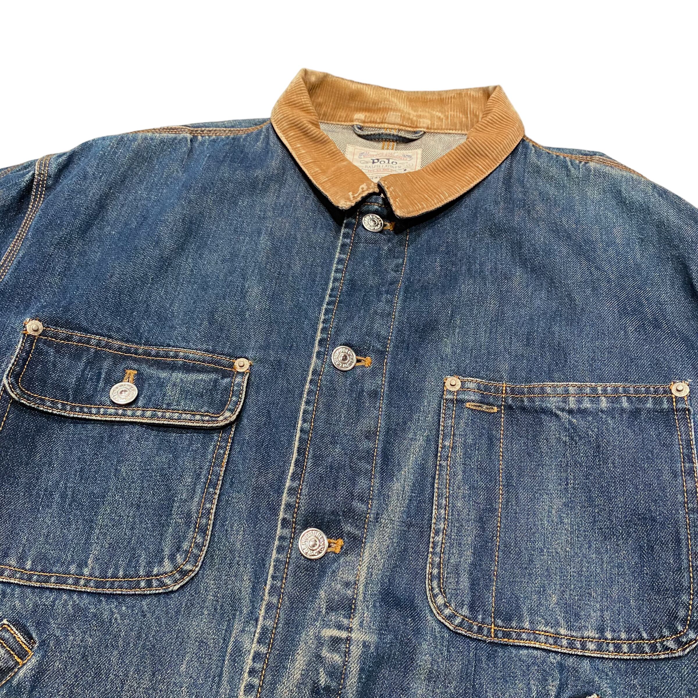 90's Polo Ralph Lauren Denim Jacket L / ポロ・ラルフローレン デニム ジャケット コーデュロイ ビッグサイズ 古着 ヴィンテージ