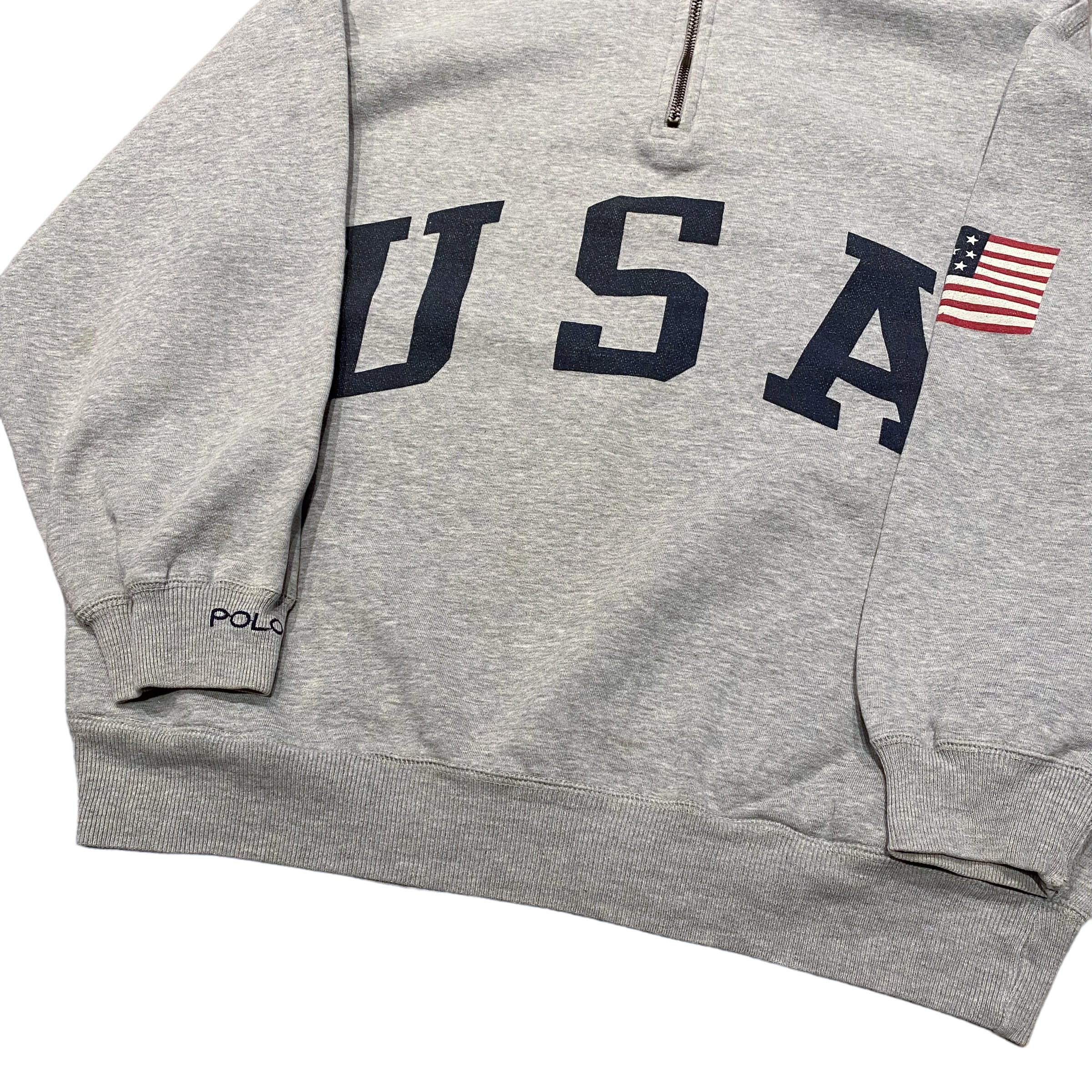 90's Polo Ralph Lauren "USA" Half Zip Sweat S / ポロ ラルフローレン ハーフジップ スウェット トレーナー 古着 ヴィンテージ