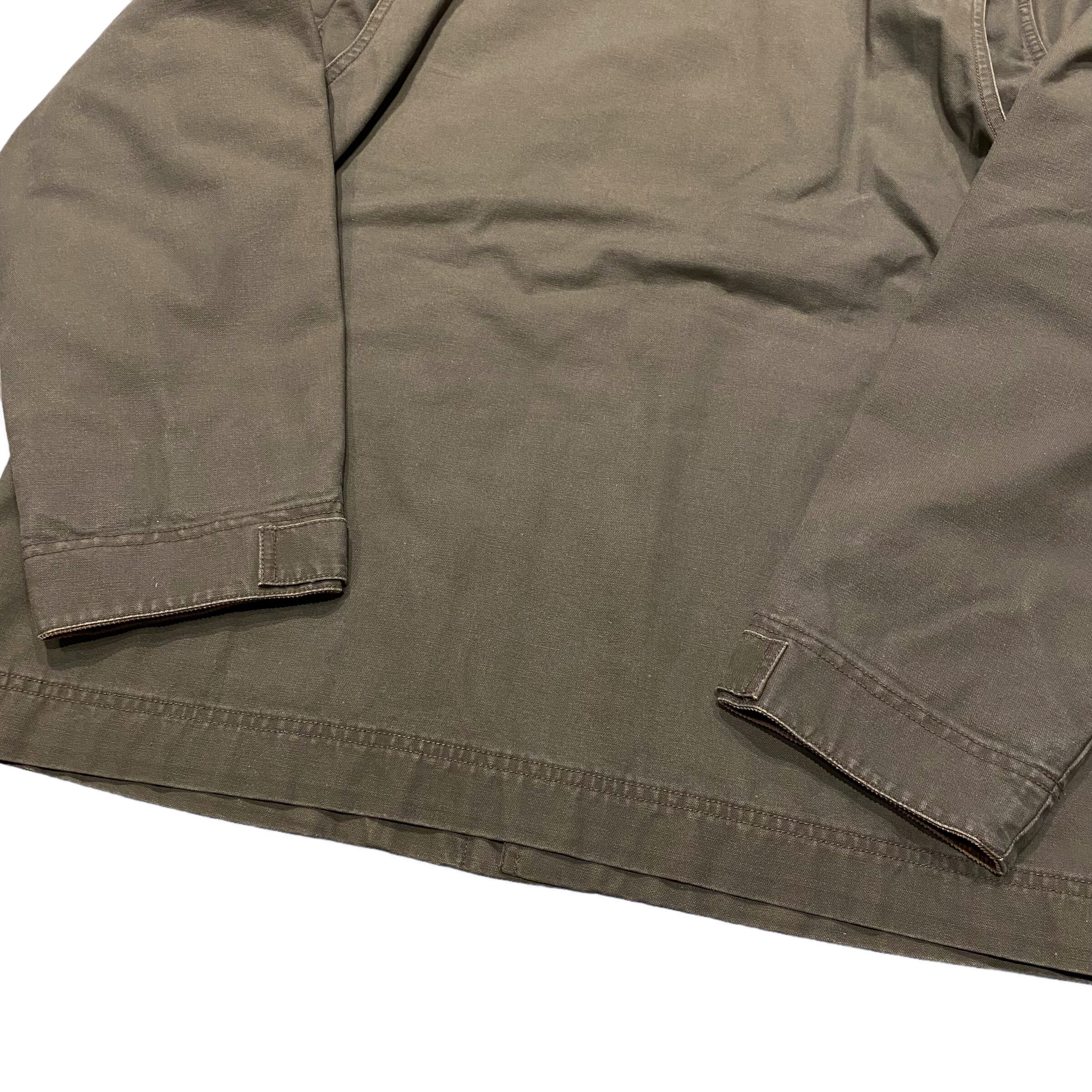 ボディのカラーは暗めのオリーブで襟と袖の内側がブラウンのコーデュロイ素材に切り替わっています。