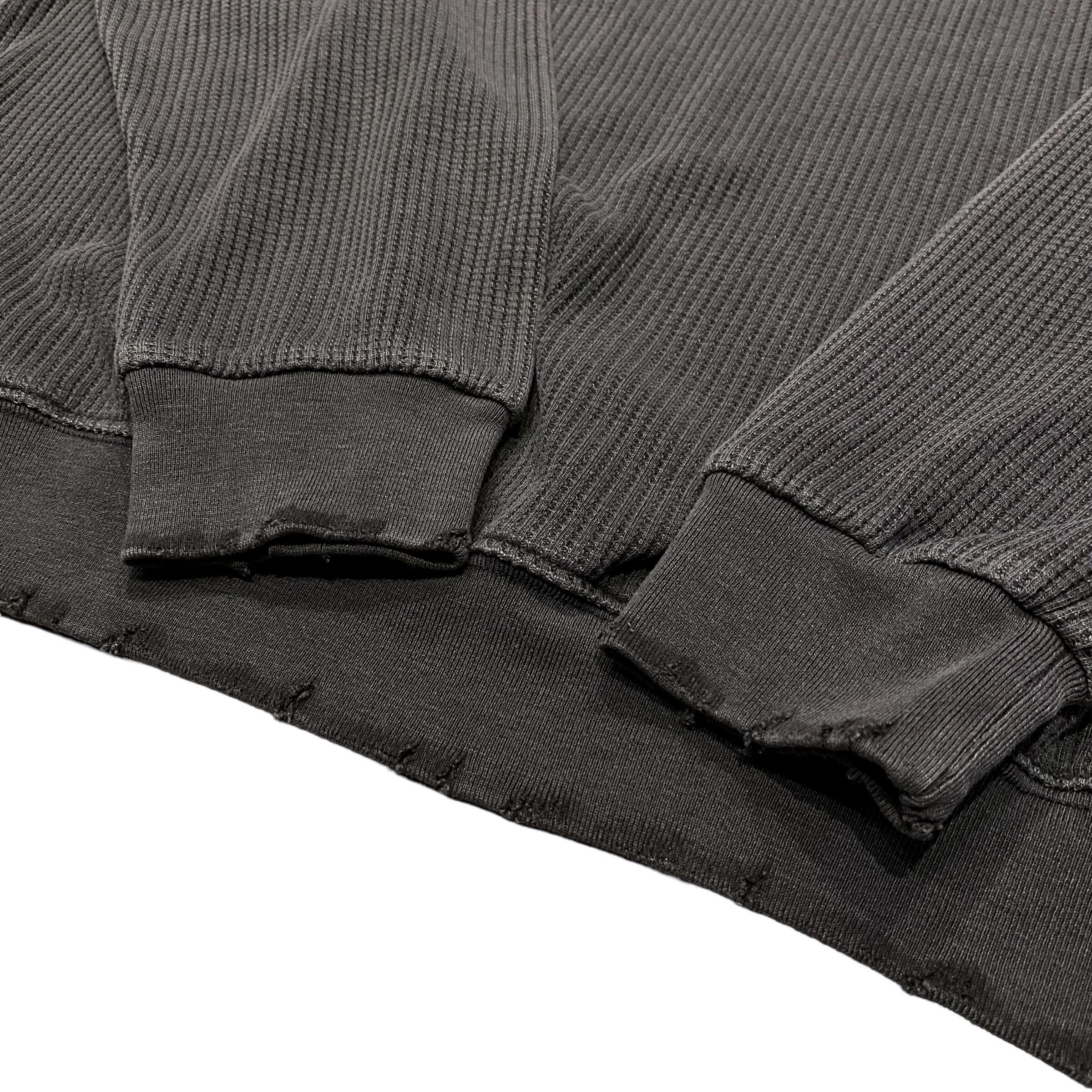 SEABEES Damaged Crew Neck Thermal Pigment Black / シービーズ サーマル クルーネック ワッフル ダメージ ピグメント ブラック