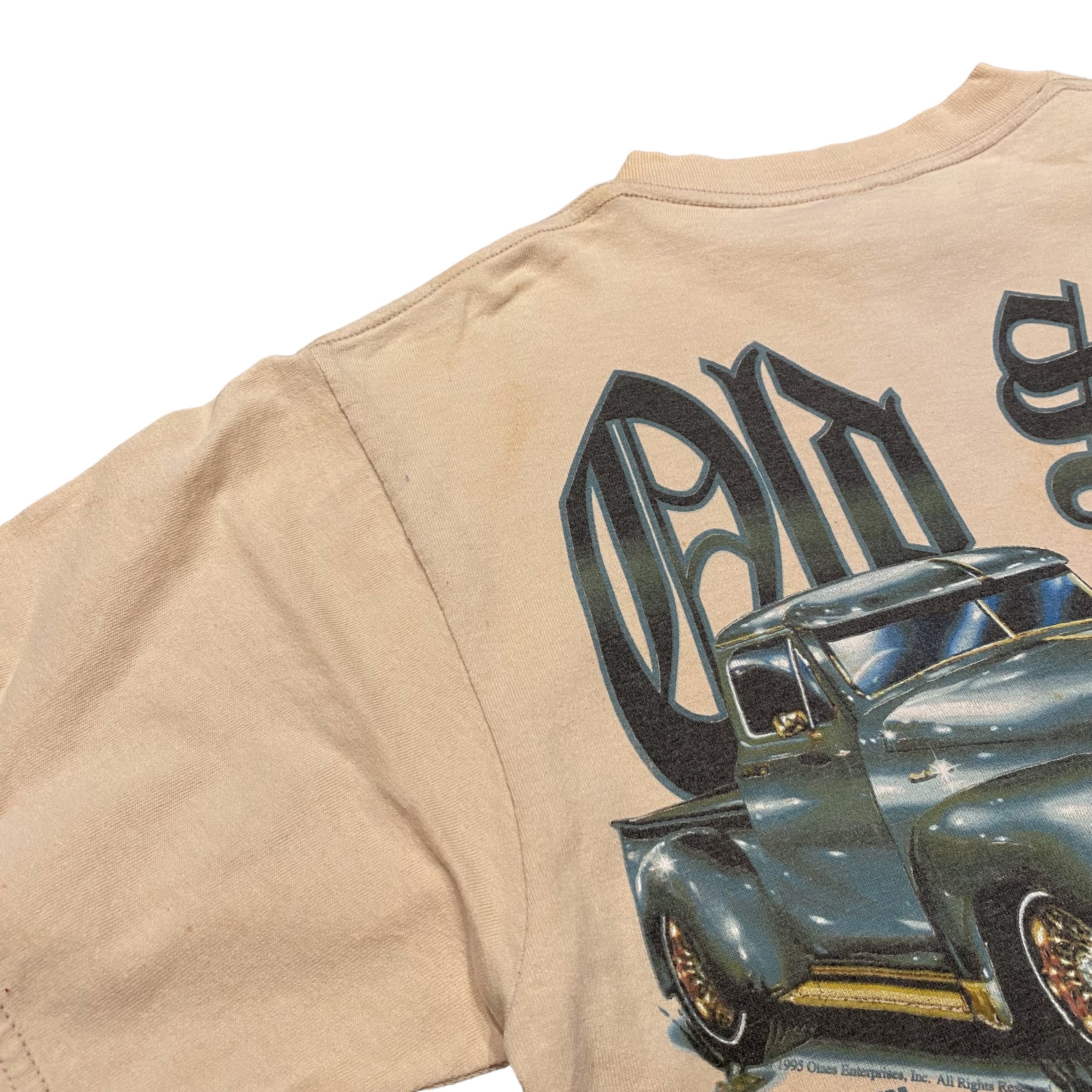 アメ車のオールドカーのプリントとオールドイングリッシュのレターが雰囲気抜群な一着。