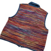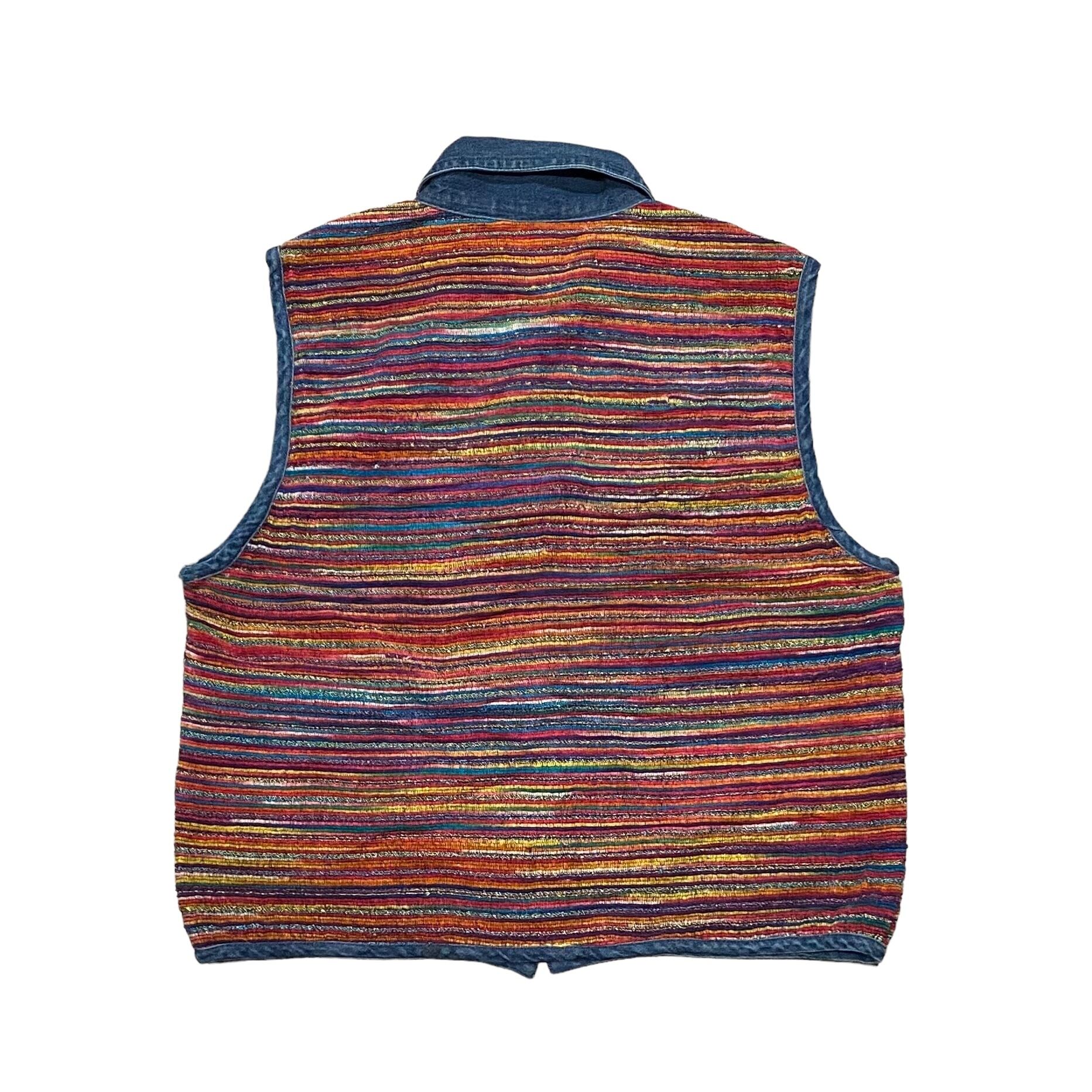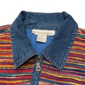 様々なカラーと太さの糸を繋ぎ合わせたような生地で、パイピングや襟のデニム生地ととても高相性。