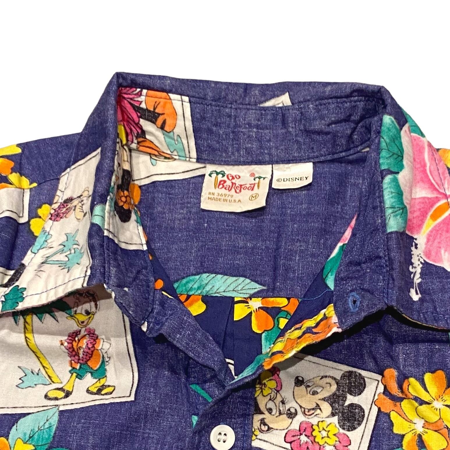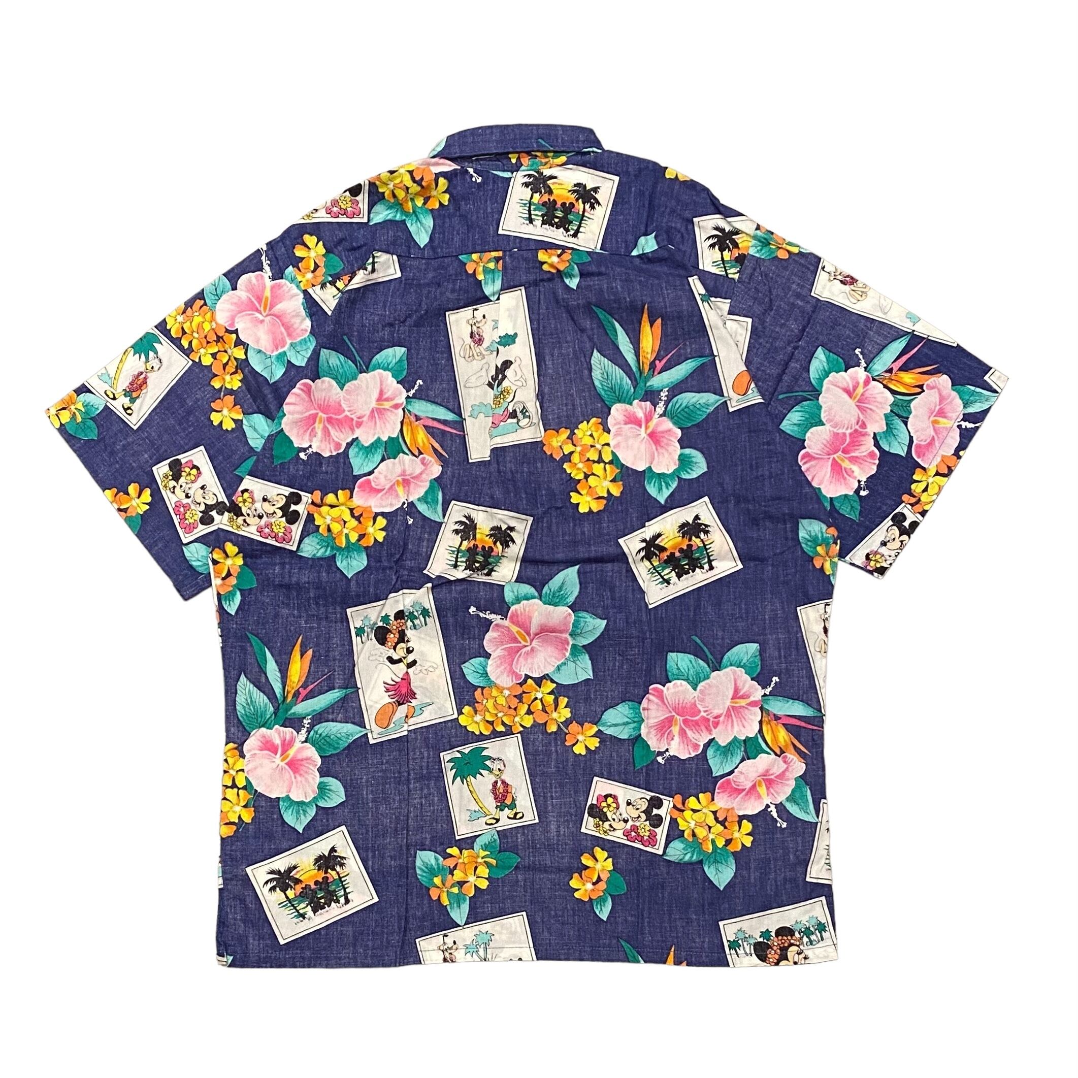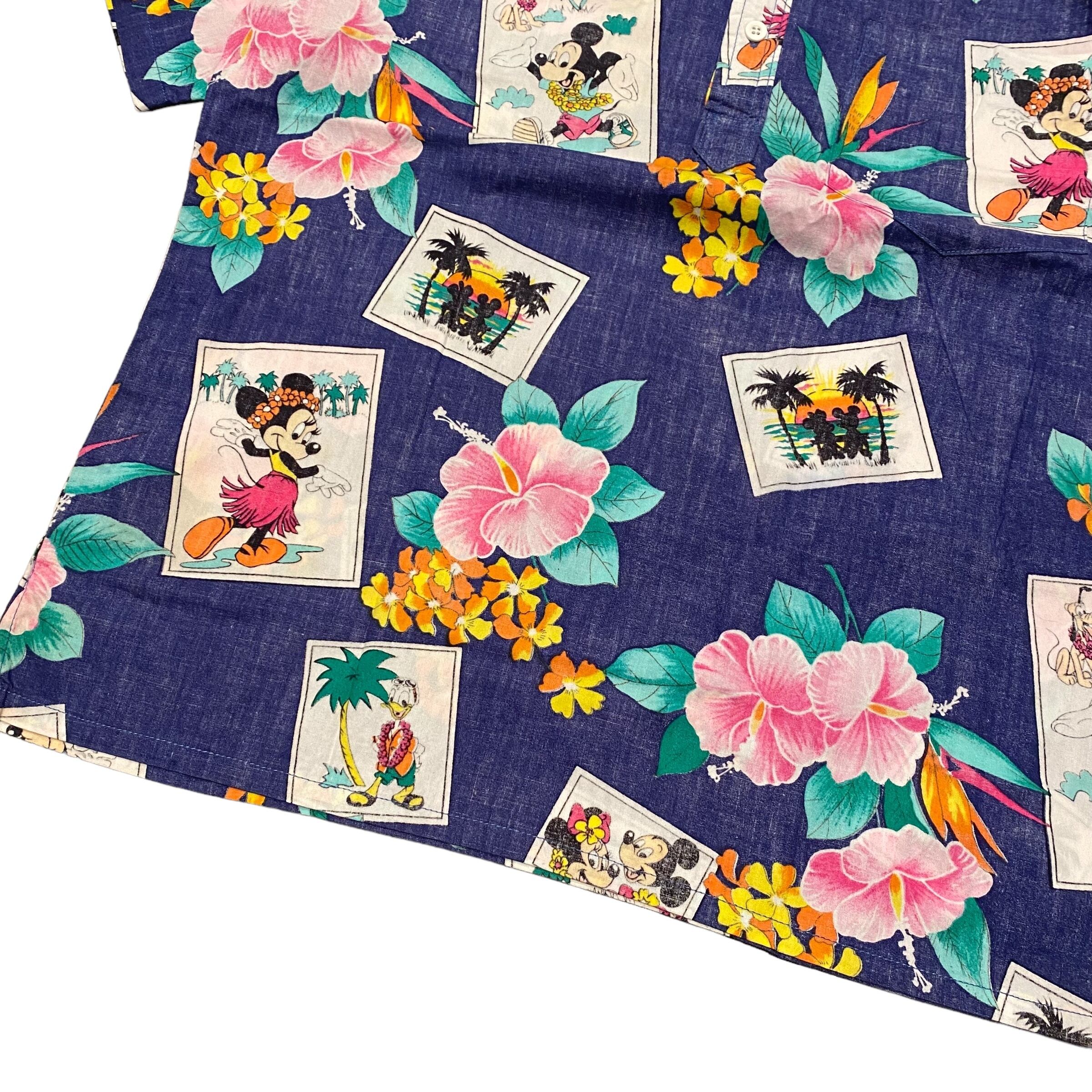 80-90's USA製 Disney Mickey Mouse Cotton Hawaiian Shirt M / ディズニー キャラクター ミッキーマウス ハワイアンシャツ 古着 ヴィンテージ
