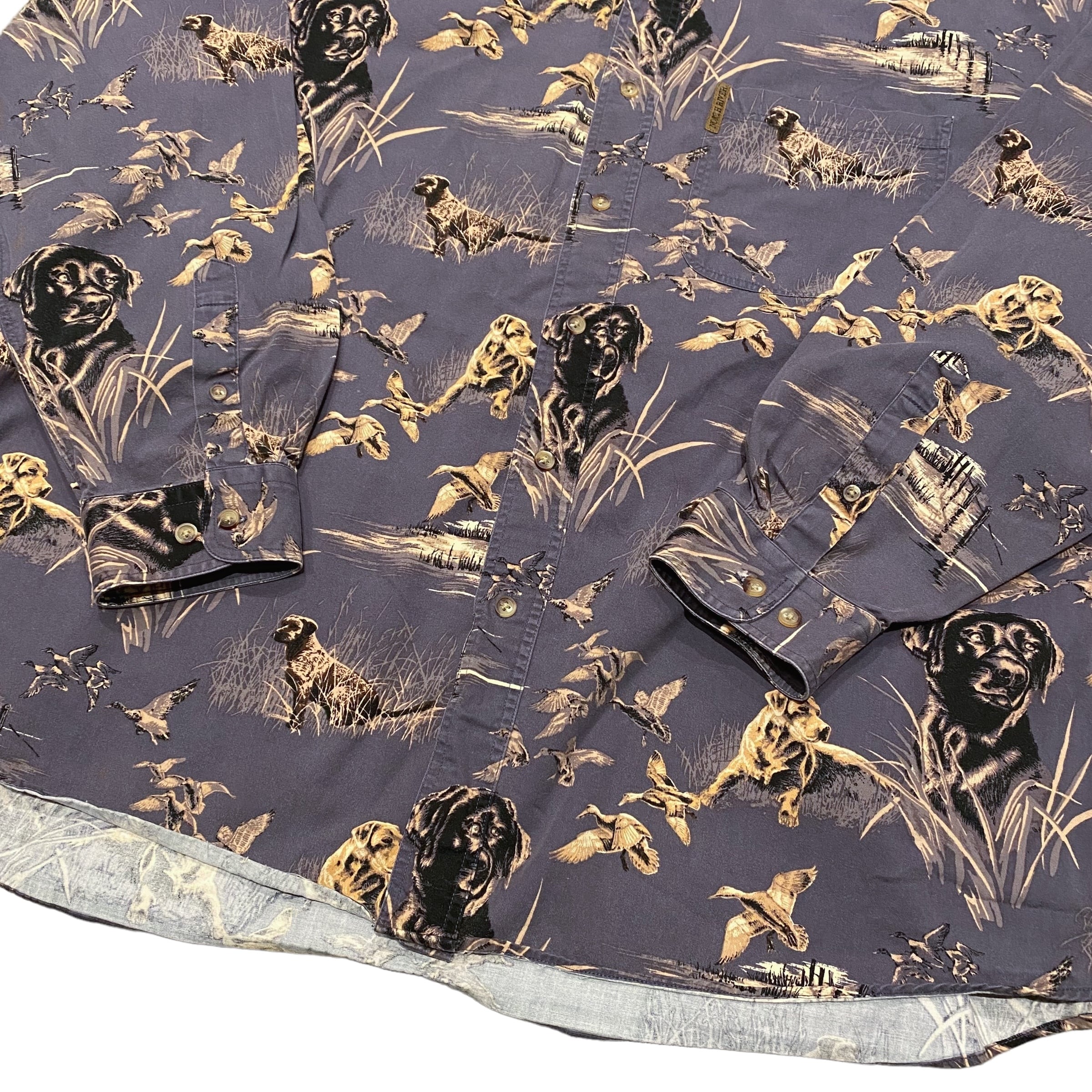 00's North River Dog Pattern L/S Shirts XXL / 犬 ハンティング アウトドア 総柄 長袖 シャツ 古着 ヴィンテージ
