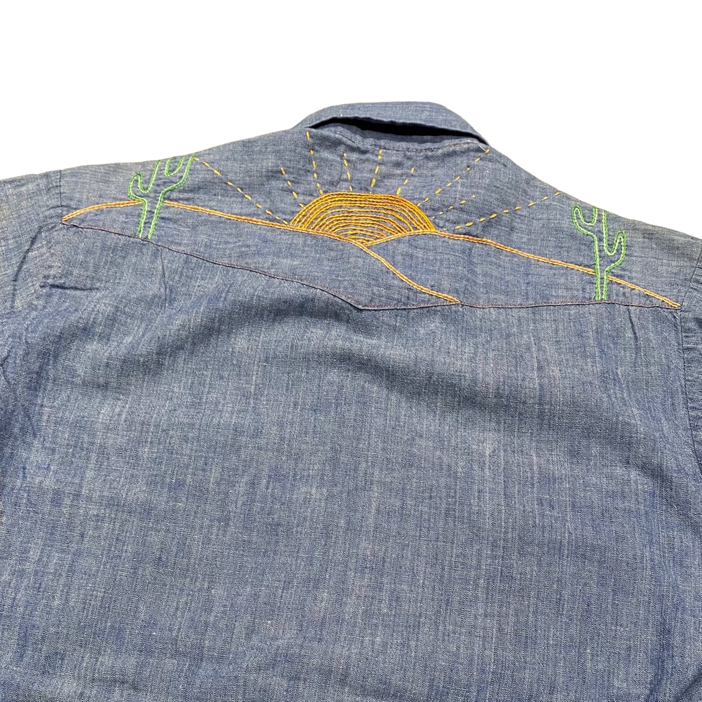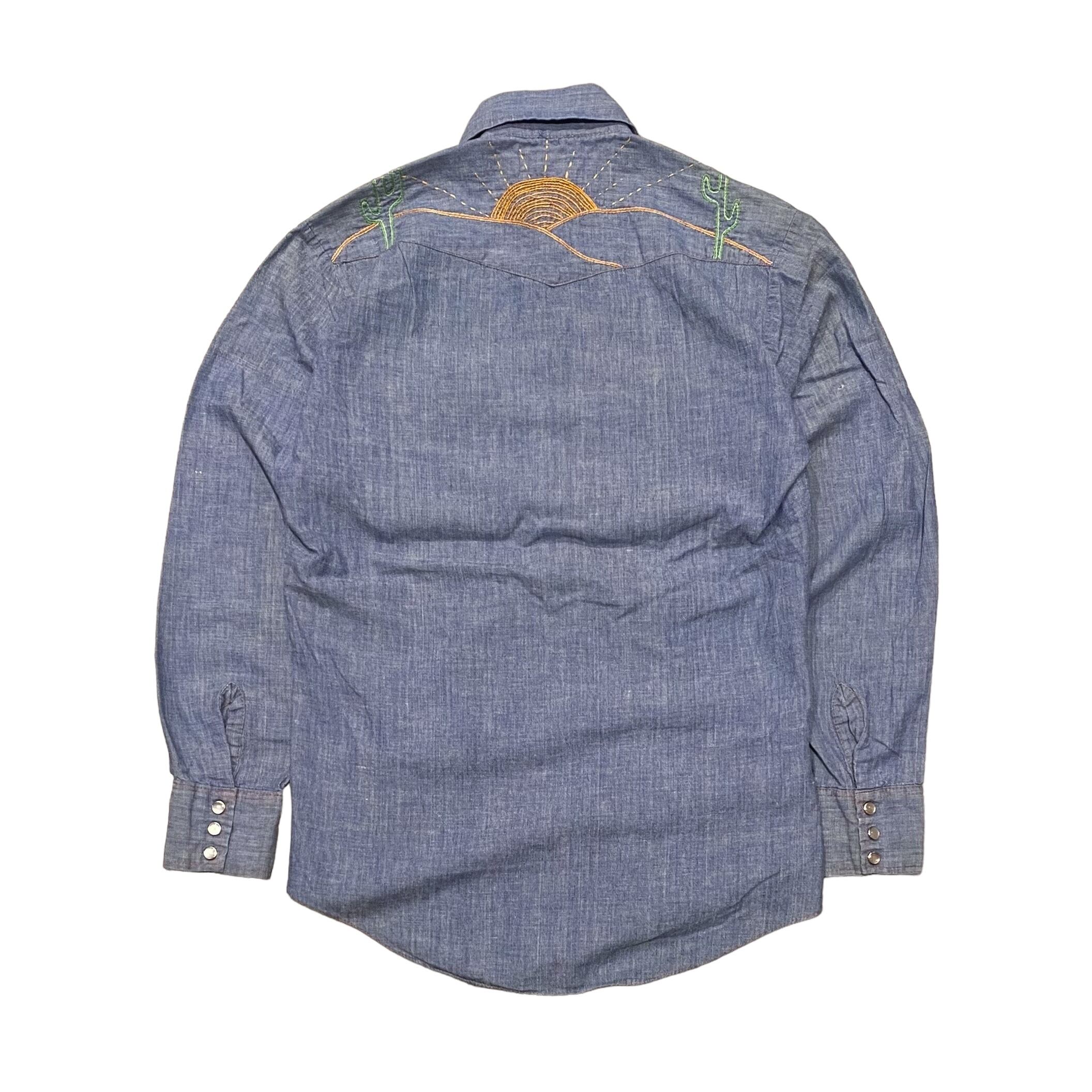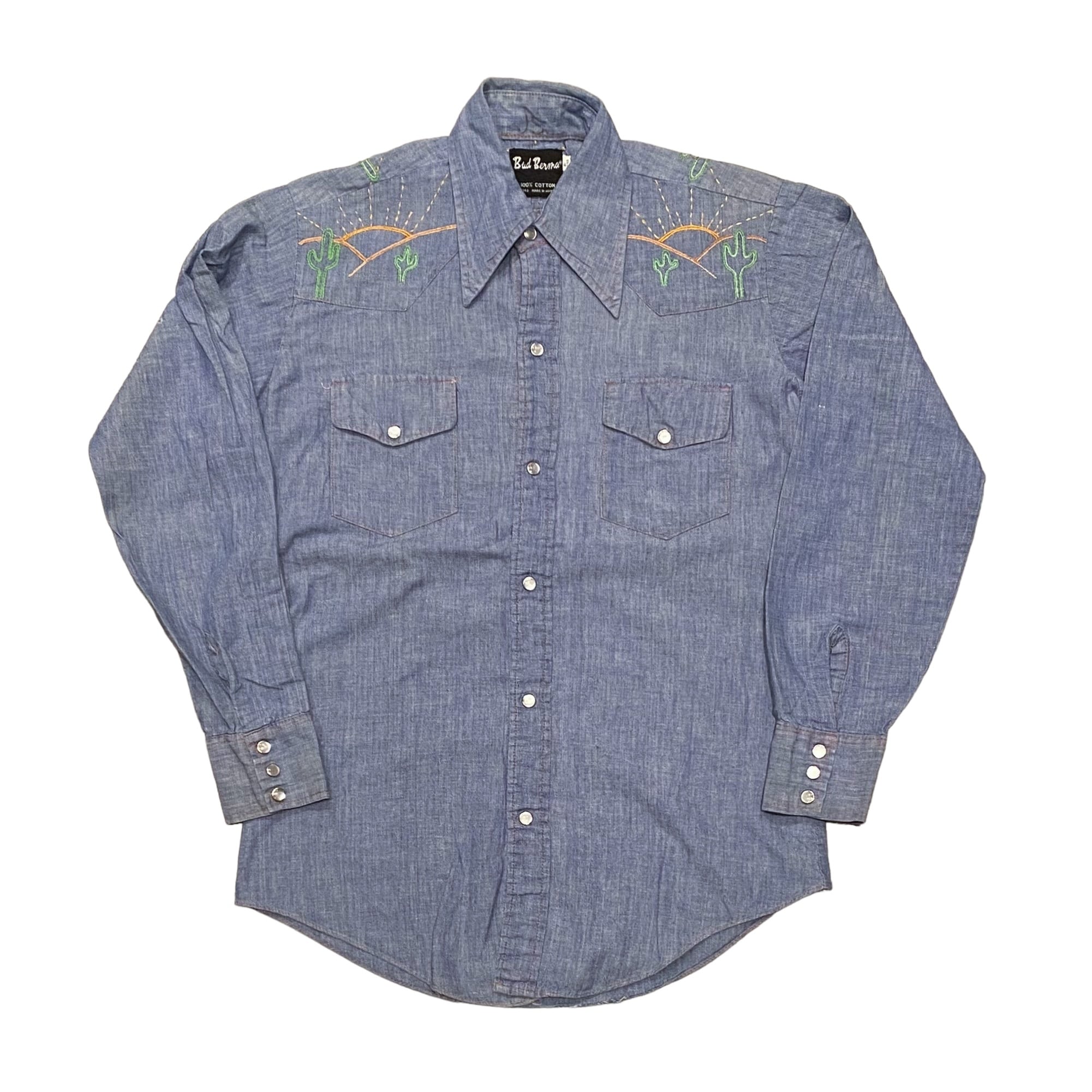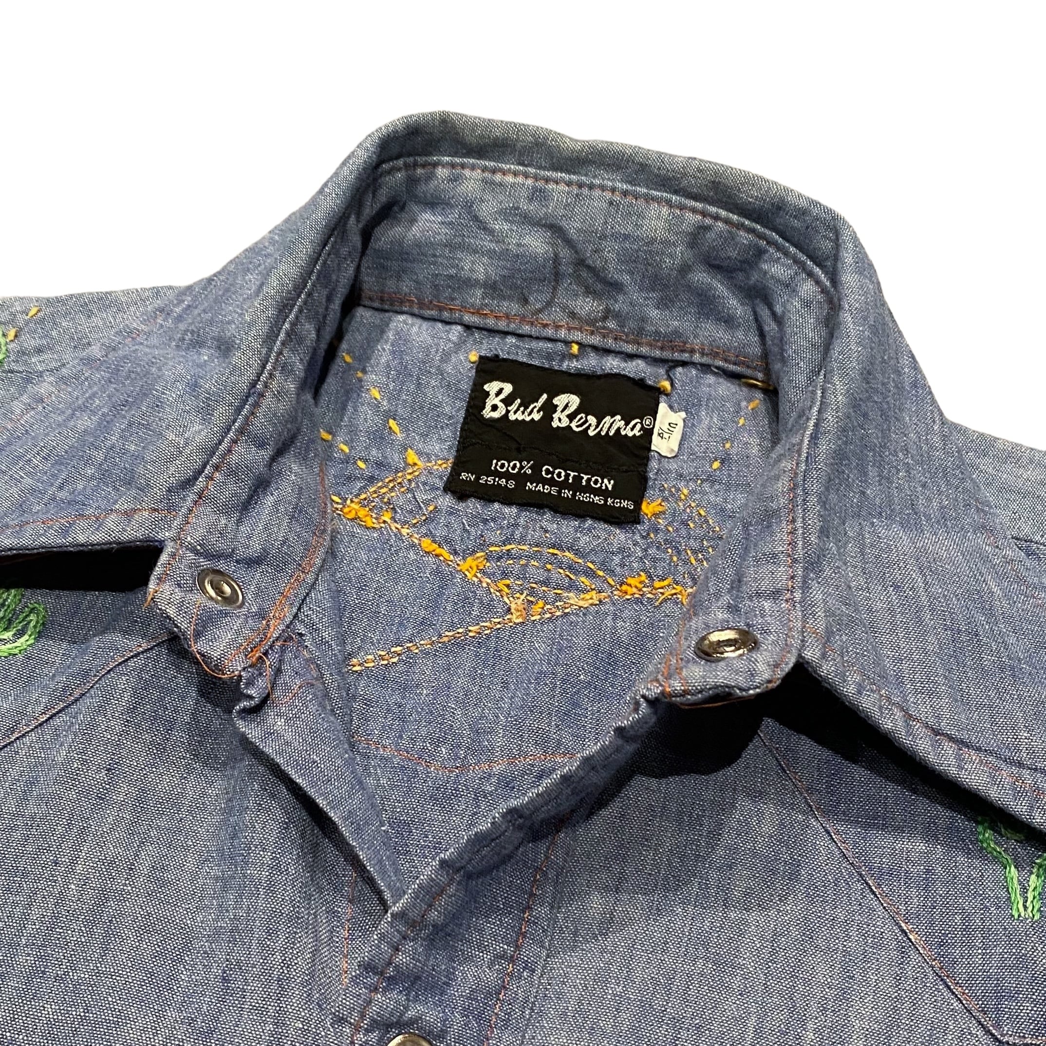 70's〜 Bud Berma Chambray Western Shirt S / シャンブレーシャツ ウエスタンシャツ 刺繍 長袖 古着 ヴィンテージ