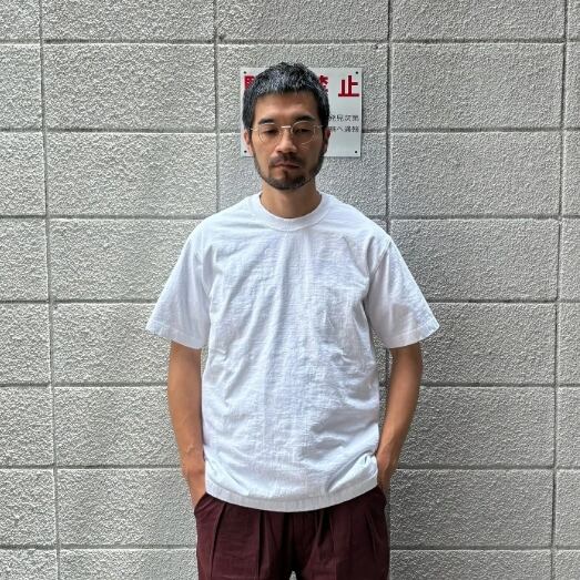 オープンエンド糸を使用した9ozのヘビーウェイト生地は、米綿特有のドライタッチでざらついたタフな生地感。