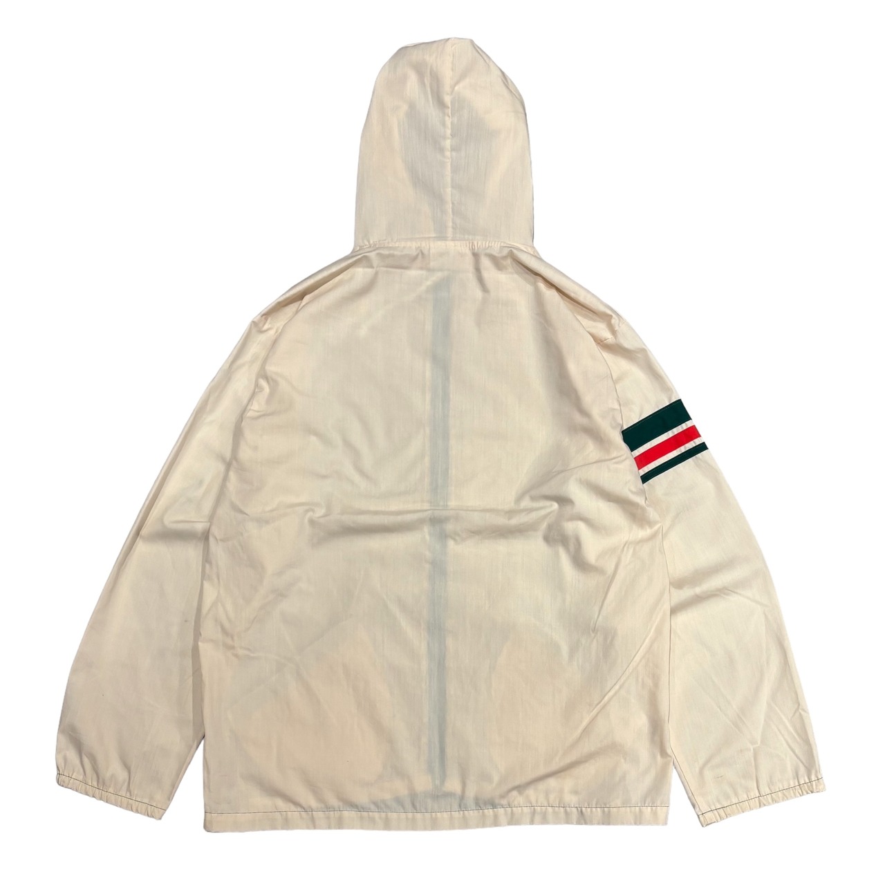 右袖の一部分がグリーンとレッドのボーダーに切り替わっています。