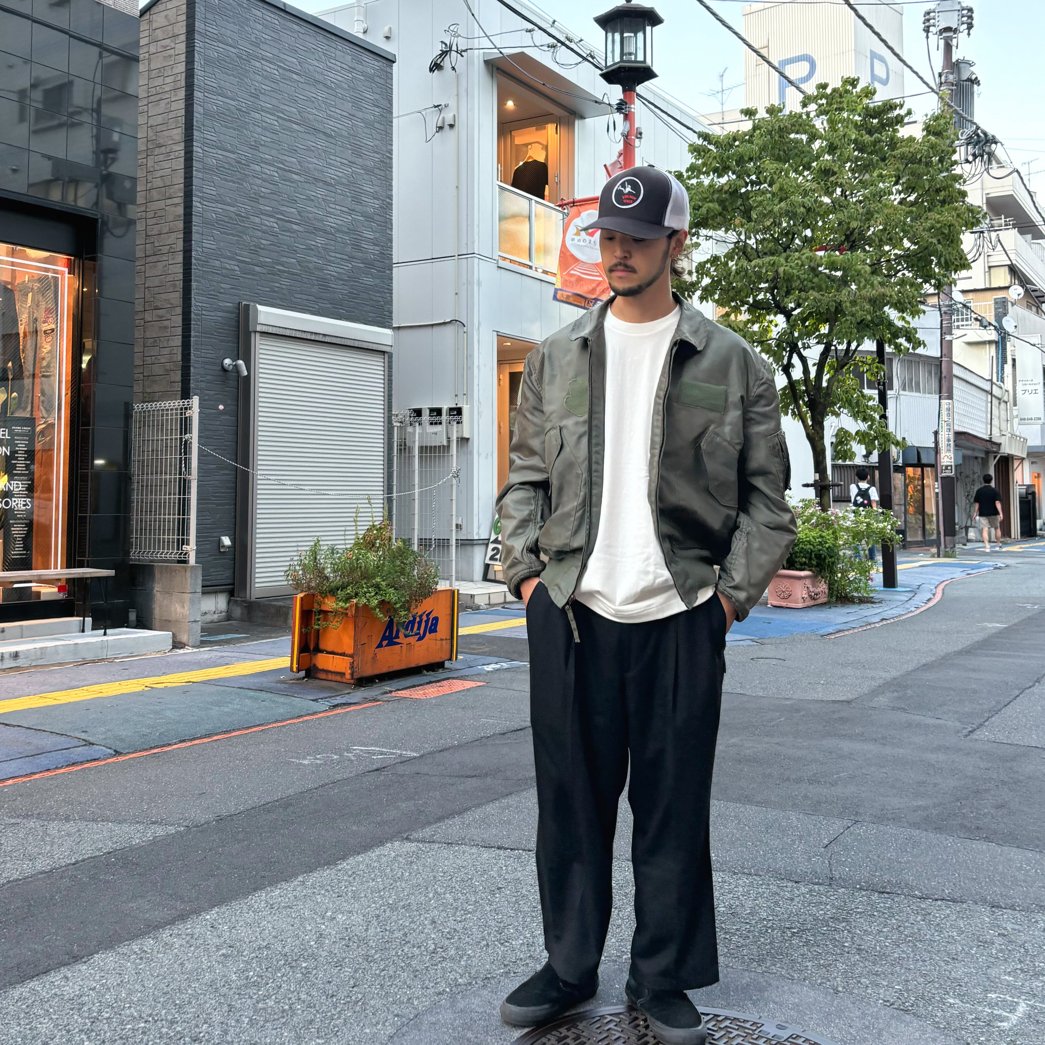 こちらの個体はXL表記で、身幅広め着丈短めのシルエットで着用しやすい1着です。