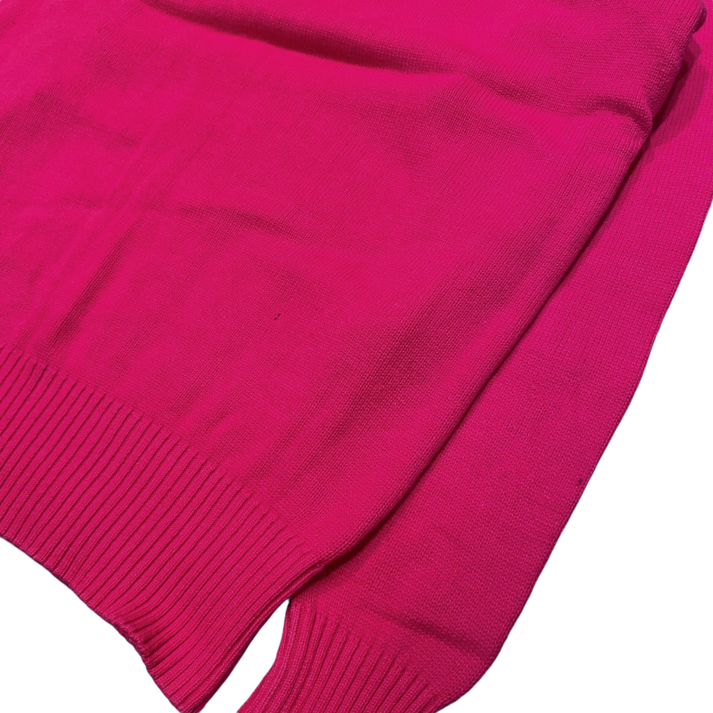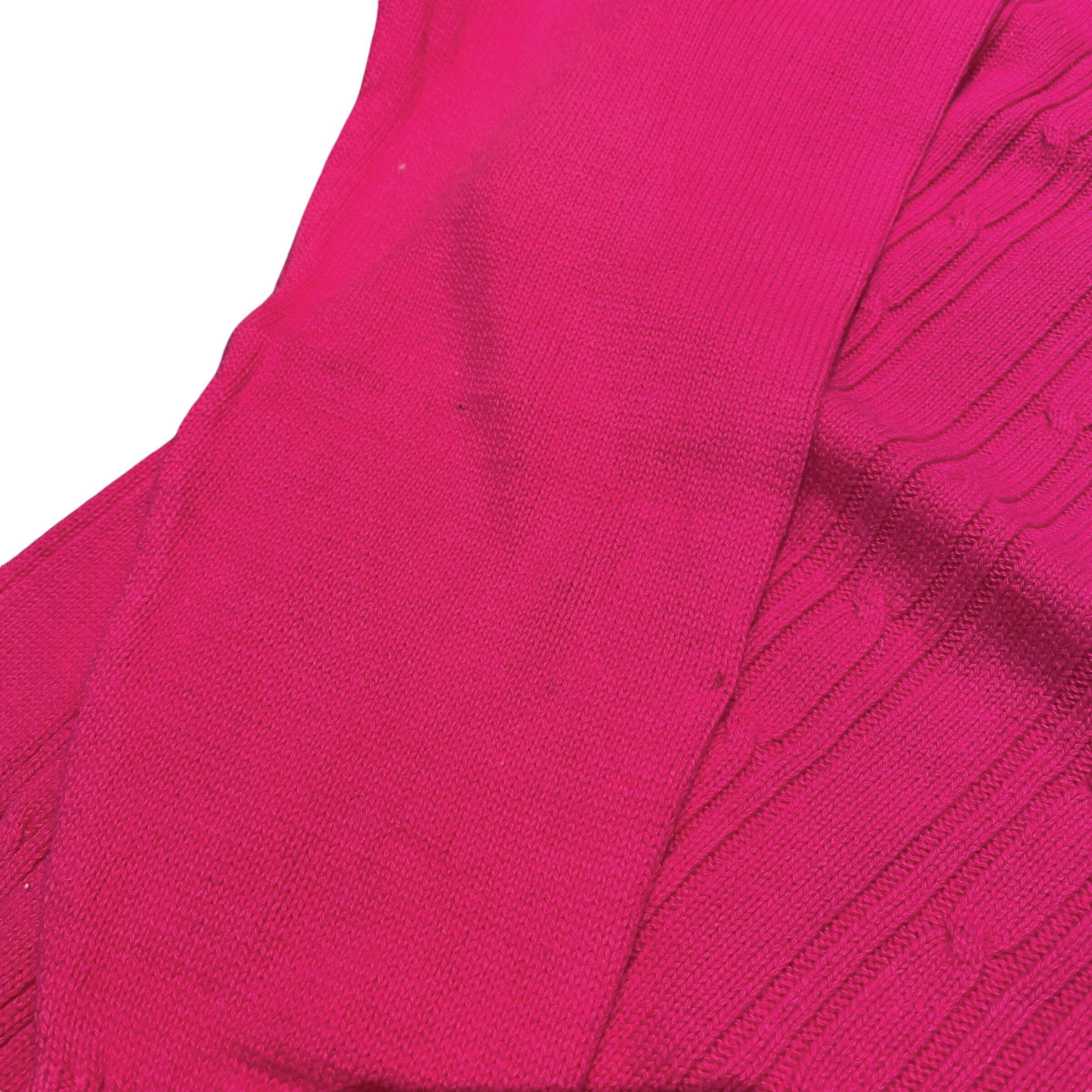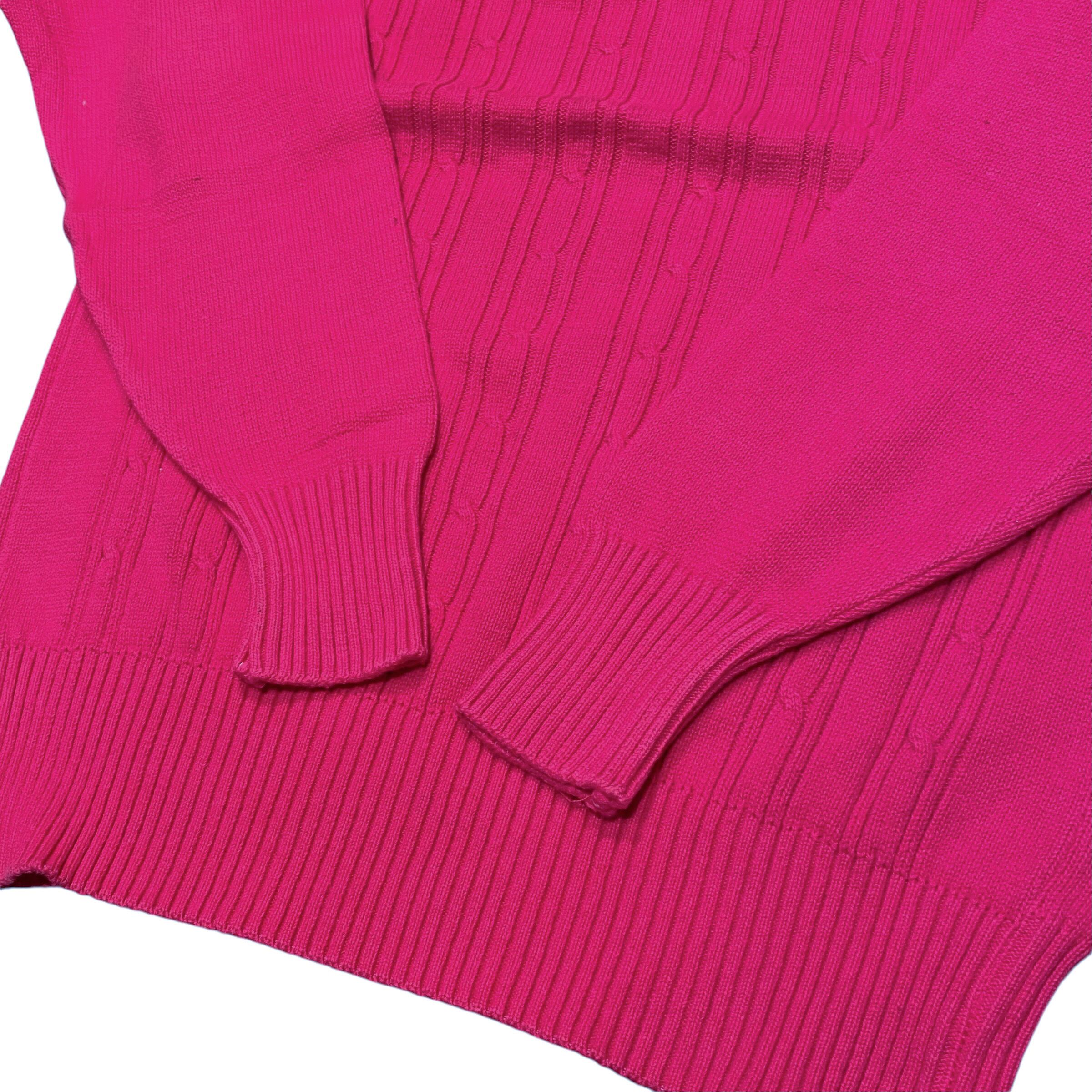 ボディーはビビットなピンクカラーでケーブル編みです。
